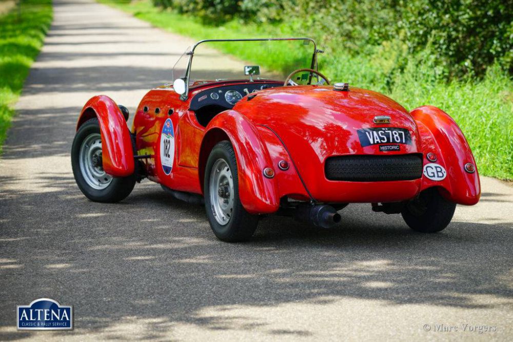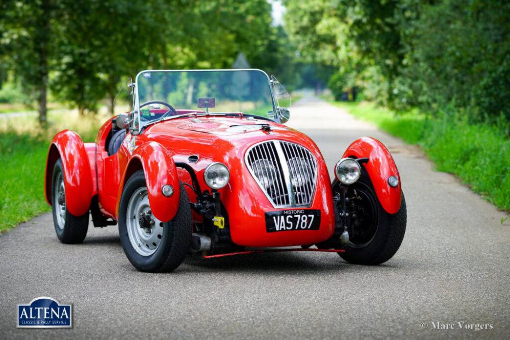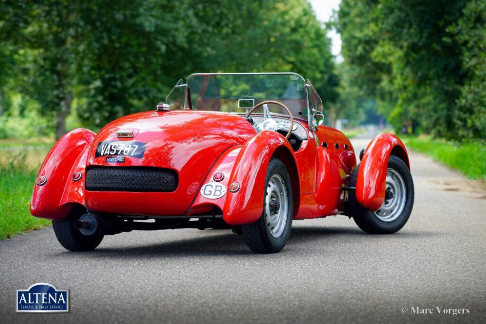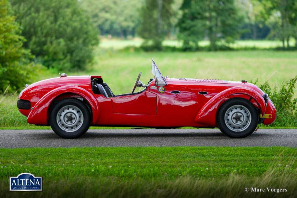 Healey Silverstone D-type, year 1949. Chassis number D23, engine number B3738. Colour red combined with a black interior and silver painted disc wheels. This magnificent Healey Silverstone comes with an American and European historic racing history and the car has participated in the 2016 Mille Miglia. This rare Healey Silverstone was sold new to the USA, the full history is known and documented. In the mid-1950s the car was partly damaged by a fire and then purchased by George Hoffmann from Los Angeles. Hoffmann had the Silverstone repaired and fitted with a fixed wind screen, and the oval shaped cooling vents in the sides of the engine compartment. This Healey Silverstone featured in the US car magazine Road & Track in March 1957. In 1979 the Healey Silverstone was found in a sorry condition by the American Mr. Clifford Jones who started a full restoration of four years to bring the car back to its former glory. After completion of the restoration in the 1980s Mr. Jones raced the car at Laguna Seca in California. In 2004 the Healey was purchased by historic VSCC and HSCC racing driver Stewart Wilkie who raced the car at Silverstone, Donington, and Le Mans in 2004 and 2005. Mr. Wilkie sold the Silverstone to an Australian who drove the car in Australian club races in 2005 and 2006. The Healey Silverstone is a rare sportscar. From July 1949 until September 1950 105 examples were built: 51 D-Types and 54 E-Types. Donald Healey Motor Company built the chassis and Riley supplied the 2400 cc ‘Big Four’ engines (featuring twin camshafts and overhead valves), 4-speed gearbox, and rear axle. In those days the Healey Silverstone was the ultimate club racers dream. Since 2016 the Healey Silverstone is owned by a Healey enthusiast family in Belgium. They participated successfully in the 2016 Mille Miglia driving this fantastic Healey Silverstone D-type. They had the car serviced and perfected by top notch specialists. This Healey Silverstone in is a very good condition showing a fantastic patina. The car drives and handles perfectly and is supplied with a detachable roll bar for circuit use. This fantastic Healey Silverstone may be your entry ticket to a future Mille Miglia regularity race!
