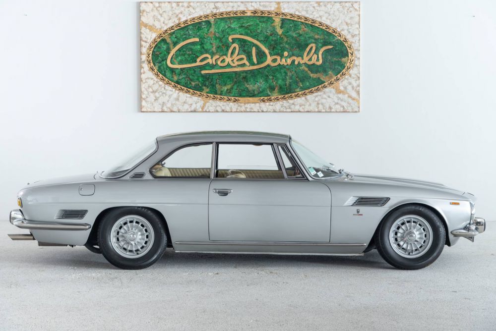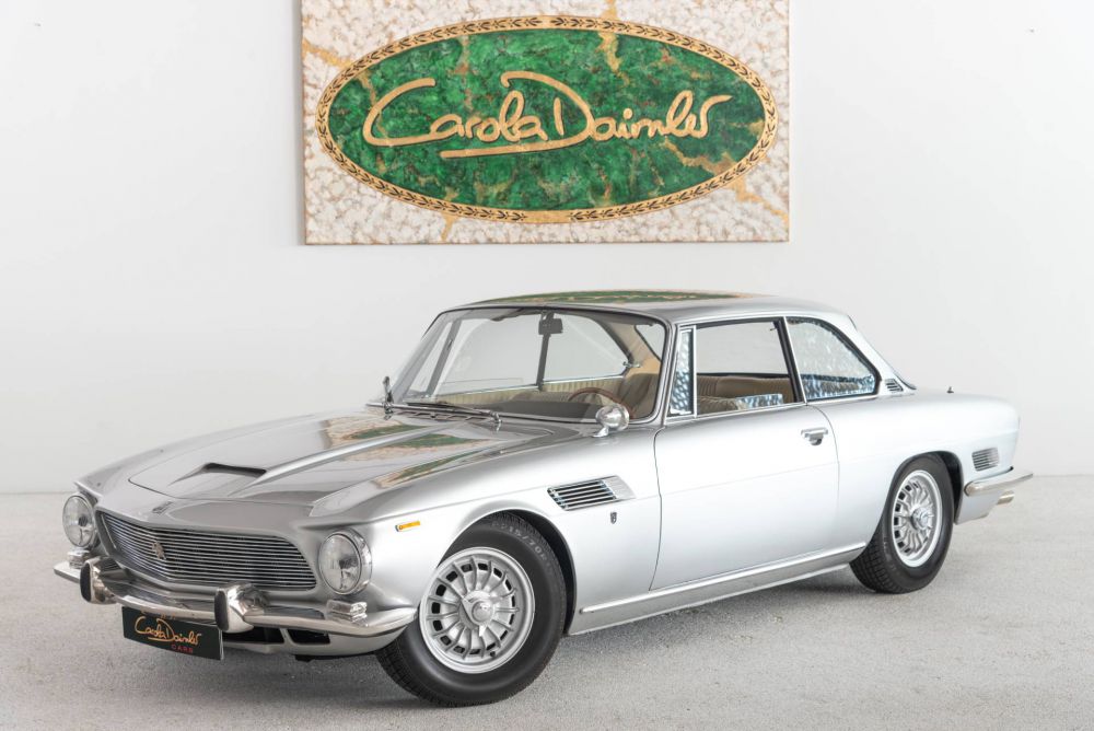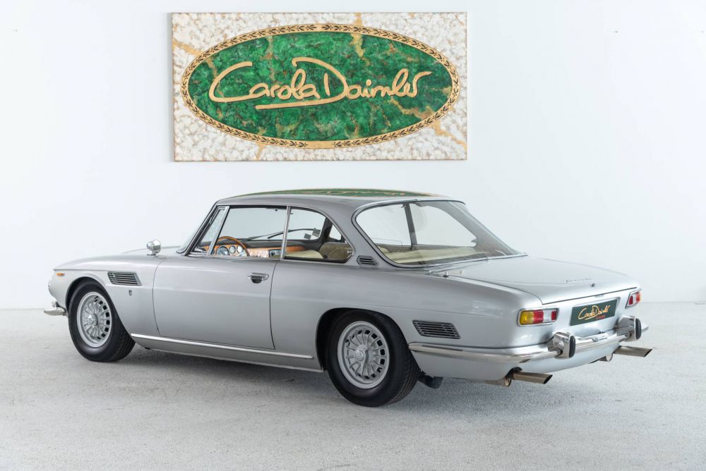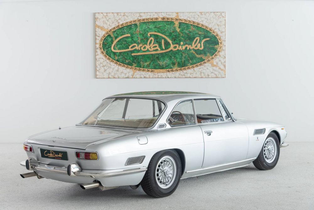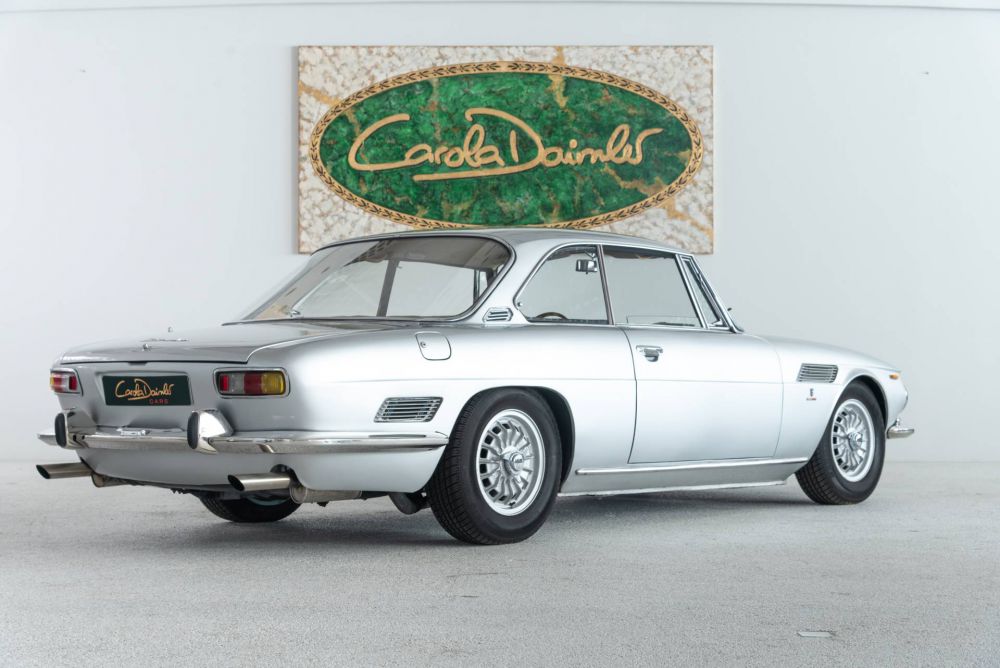 Bertone's Giorgetto Giugiaro led the design of the elegant 2+2 coupé with classic proportions and an impressive grille.  Large windows make for a bright cabin, the interior has an Italian flair with leather, wood and beautifully designed Veglia instruments. The partially self-supporting sheet steel body was manufactured by Bertone. It was mounted on to a solid steel box frame, developed by Giotto Bizzarrini and Pierluigi Raggi. At the front, the wheels are individually suspended on trapezoidal triangular wishbones and coil springs, at the rear, a De Dion construction ensures wheel control. Four disc brakes decelerate the power of the 5.4-litre Corvette engine, which accelerates the Coupé to up to 218 km/h. The four gears are engaged by a fully synchronised Borg-Warner gearbox, which transmits power to the two rear wheels.