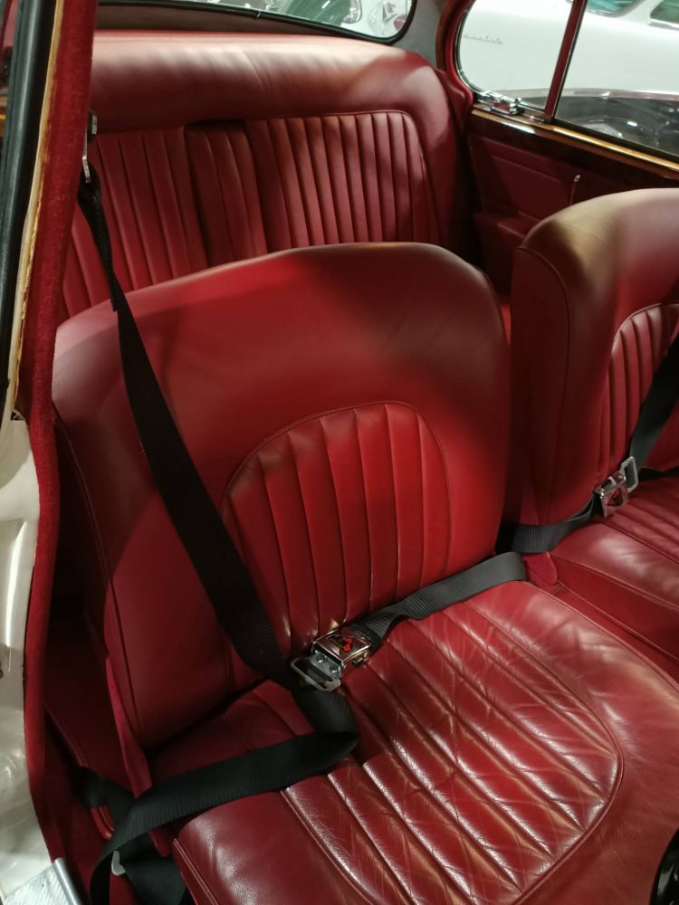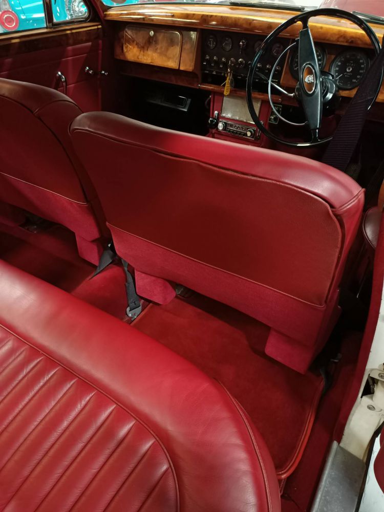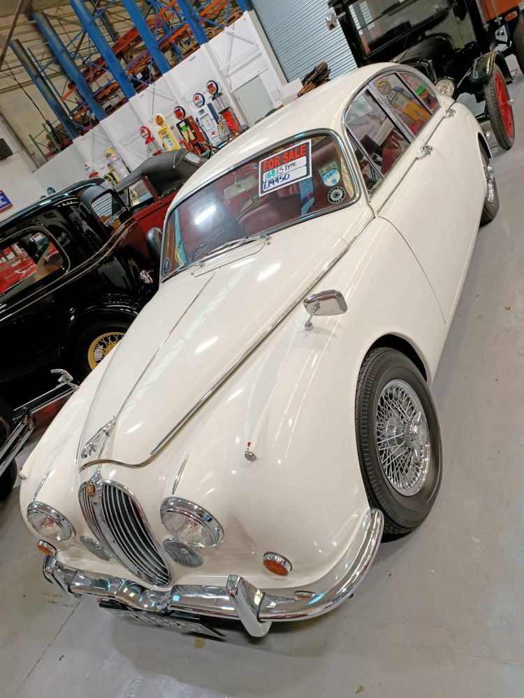 An exceptional 1968 Jaguar MK2 240, presented in white coachwork with new red leather interior.It is a right-hand drive and has recently benefited from a full mechanical recommissioning including upgrade air conditioning.In the Autumn of 1967, the MK2 range - less the discontinued 3. 8 - morphed into the interim 240 and 340 models intended to bridge the gap prior to the launch of the XJ6 in September 1968. The 240 continued as a budget model until April 1969, its price of £1364 being only £20 more expensive than the first 2. 4 in 1956. Output was increased from 120 bhp at 5, 750 rpm to 133 bhp at 5, 500 rpm and torque was increased. There was a slight reshaping of the rear body and slimmer bumpers with over-riders were fitted. New models included tufted carpet on the floor. The front fog lamps were replaced with circular vents and were made optional for the UK market at the time.This stylish 1968 Jaguar MK2 240 is sure to turn heads as you take it for a spin!