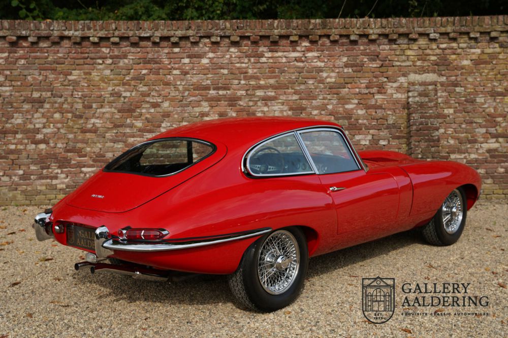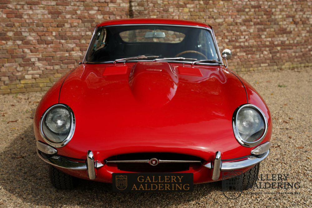 About fifteen years ago, this E-type was restored down to the smallest detail and to the highest level. The previous owner owned the car for a very long time. The E-type is finished in Carmen Red, over a black leather interior. Beautiful paintwork adorns the E-type, the bodywork of which is also in formidable condition under the paint. The fits are fantastic, doors and hinged parts close optimally. Literally beautiful chrome completes the exceptional condition of this car.