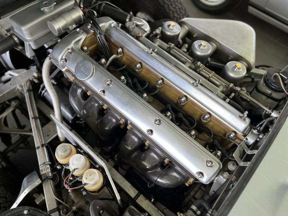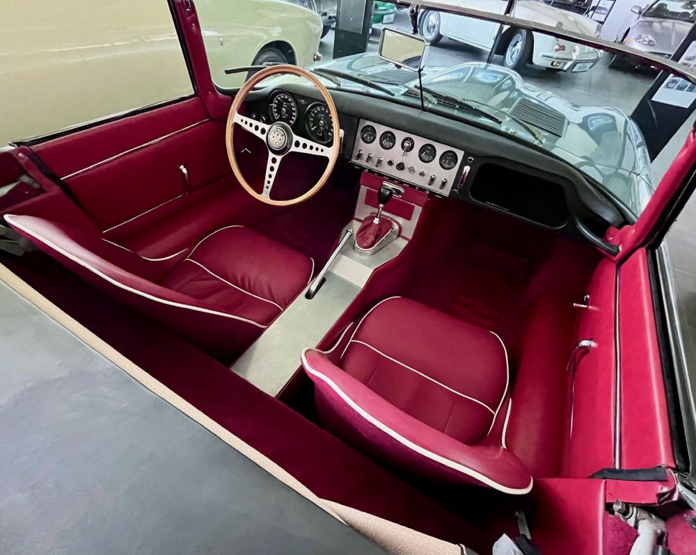 The E-Type remained in the USA until 2001, was partially restored there once and then came to Austria. There, the beautiful vehicle remained in the same ownership for 22 years with a Jaguar enthusiast who meticulously looked after, drove and serviced the car. The car was recently completely overhauled in our specialist workshop Jensen-Classis. Many new parts were installed and the vehicle was completely checked. A recent compression test shows that the 6-cylinder engine has the best values. The 3.8 liter six-cylinder engine produces a whopping 269 hp and delivers a maximum torque of 353 Nm. Even back then, these values ​​ensured an impressive top speed of 241 km/h.