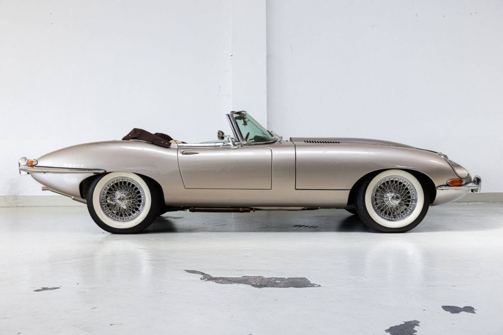 Bij Jaguar zelf vielen deze '1 1/2s' gewoon onder de Series 1. We zouden uren kunnen praten over het verbluffende ontwerp van de E-Type, vooral deze in Golden Sand. Een adembenemende kleur! Trouwens, wist je al dat Enzo Ferrari vindt dat dit echt, maar dan ook echt de allermooiste auto ooit is?