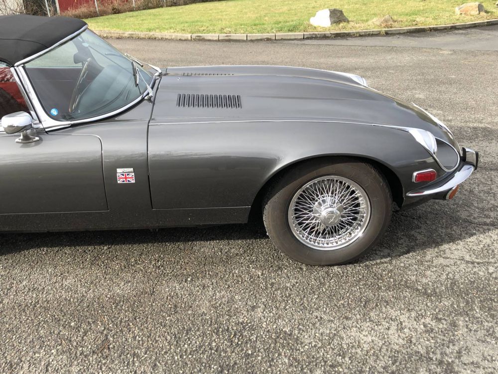 Angeboten wird hier ein Jaguar E V12 Serie 3 Roadster. Er befindet sich seit 25 Jahren in einer Hand und ist seither auf den Straßen Europas unterwegs. In der der Farbkombination gun-metall-grey mit roter Lederinnenausstattung ist einer der wenigen auf dem Markt. In all den Jahren ist der Jaguar stets gewartet und repariert worden. Ein Ordner mit Rechnungen, Gutachten und einem Jaguar Heritage- Certificate liegt vor.