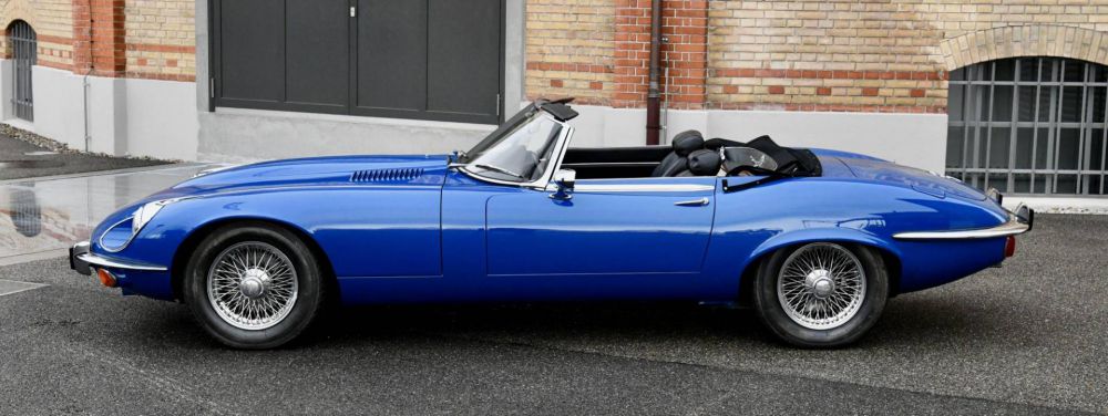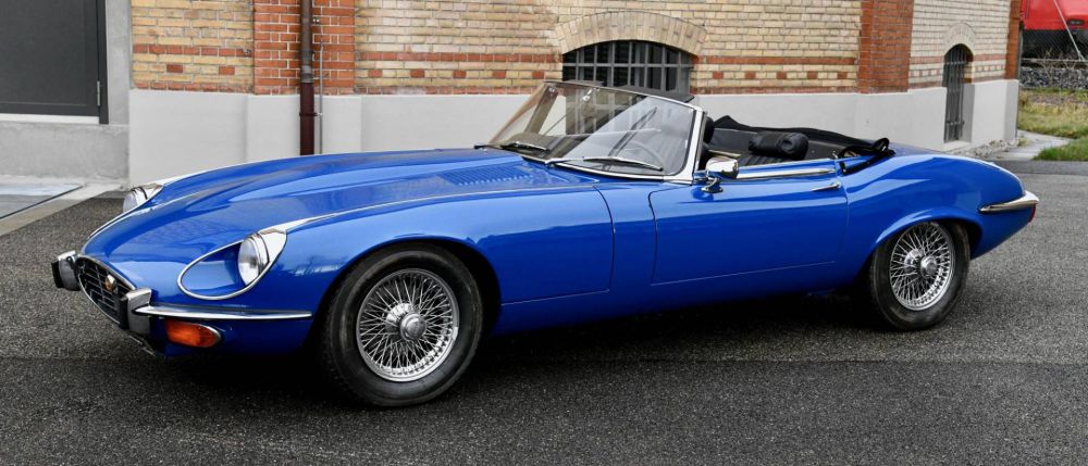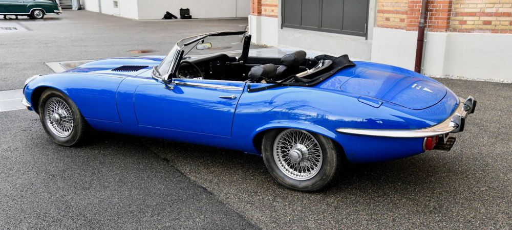 1973 Jaguar E type V12 Convertible LHD Manual OTS Chassis number: UDIS21842 Registration number: Swiss Registered. Matching numbers. Coming to us from a famed Swiss collection of impeccable cars, this V12 E type has covered an indicated 36,000 miles or 58,000 KMs from new. The car is finished in immaculate Azure Blue with black hides to the interior. The car is similarly well detailed under the bonnet. A brand new black mohair hood has just been fitted. No expense has been spared on this car as witnessed by the massive history file with huge bills going back from this year all the way to the 1980's. As a result the car starts instantly & drives exactly as one might expect from a low mile properly looked after E type. It will pull away smoothly in top gear from walking pace. The original tool kit comes with the car as does the copper hammer for removing the knock off wire wheels. The car is completely corrosion free being garage kept & used sparingly only on dry days. The car is located just south of Lake Constance & may be viewed there by prior appointment. It is however of such quality that it may be bought & delivered sight unseen with no worries. It will be sold freshly serviced.