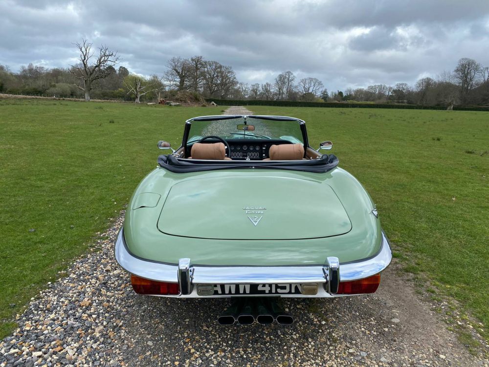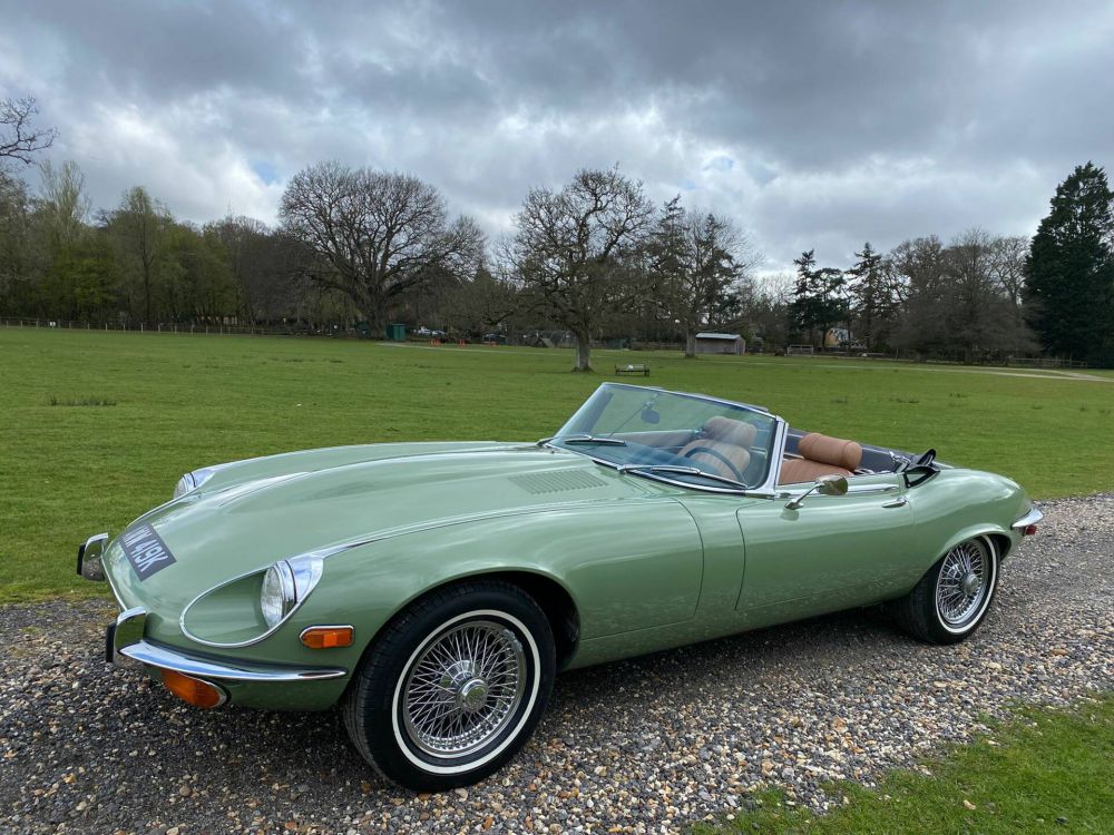 Jaguar E Type V12 Series 3 Roadster, rare automatic transmission, Willow green with biscuit leather interior and black soft top. Very low ownership with only 51,000 miles from new. Left hand drive having coming from the US in 2019 although unusually this car has a complete history file including the original plastic folder containing the service book and user manual. Most imported cars seem to have little known about them previously before they come to the UK. A very original rust free car that has benefitted from much recent mechanical work and a bare metal repaint. Comes with excellent history including a Heritage certificate confirming matching numbers. Any inspection welcome and delivery available. £69,995