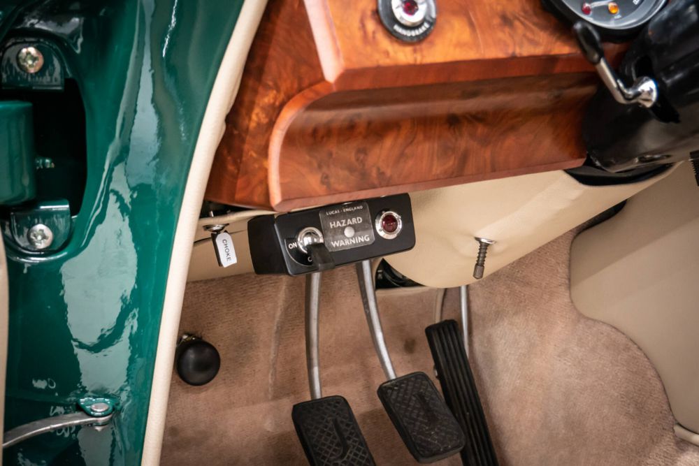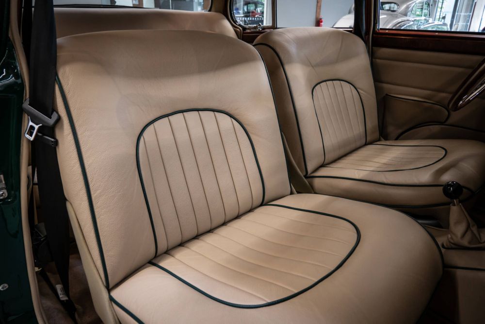 The interior has also been restored to a very high standard with leather in beige with matching piping in green.