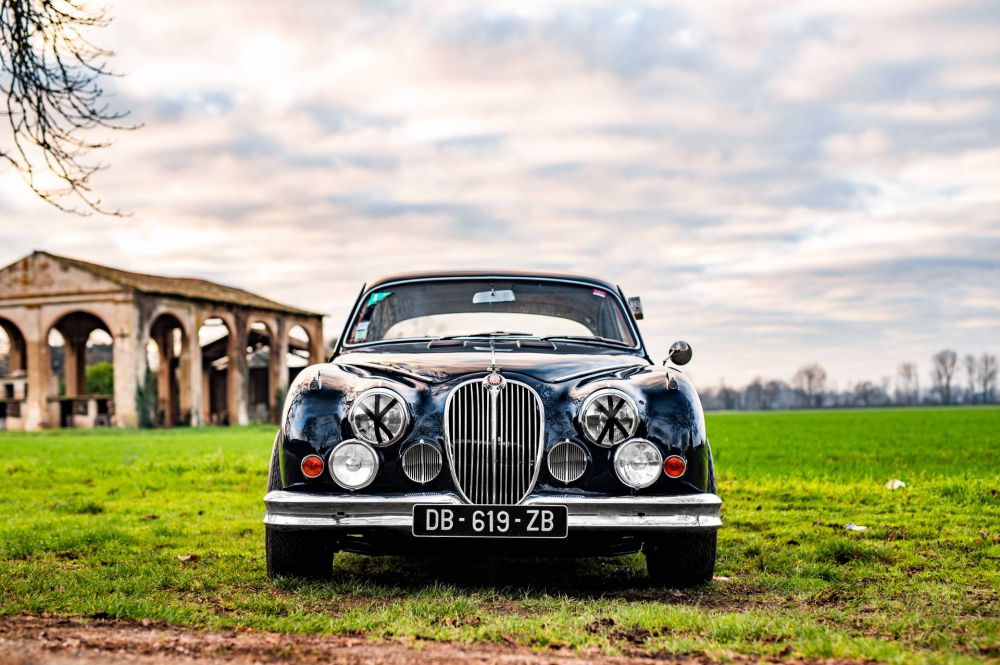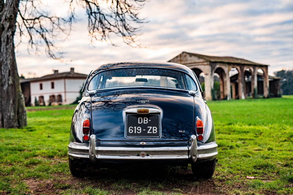 Présentée en 1959 avec plusieurs motorisations (2.4L, 3.4L et enfin avec sa plus grosse motorisation en 3.8L), la Jaguar MARK 2 a apporté quelques innovations techniques marquantes : des freins à disques aux quatre roues. Des surfaces vitrées agrandies avec des montants fins et chromés ou encore un train arrière plus large que sa grande soeur la MK1 afin d’avoir une tenue de route exemplaire.
