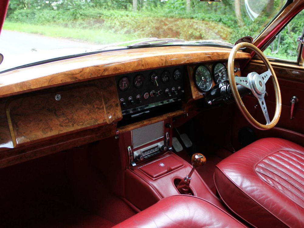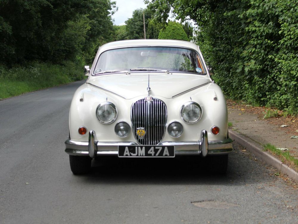 AJM 47A is a beautifully presented older restoration that was rebuilt to an exceptionally high standard. Many years on the bodywork is first class with superb panel gaps and door fit. The panels are perfectly straight and finished with lovely Old English White paintwork. The chrome work gleams, the chrome wire wheels are smartly presented and the Michelin tyres also in excellent condition. The underside of the vehicle is top class and has been Dynax treated and protected. The Jaguar has a wonderful upholstery with stunning red leather, perfect carpets, door cards and headlining. The walnut has been re-veneered and is beautiful, the gauges all work and the car has a true feel of quality throughout. The experience of driving the car is equally impressive with beautiful light steering, efficient, sharp brakes and a firm, well maintained suspension. The 3.8 litre engine is strong, quick, responsive and holds excellent oil pressure. The all syncro gearbox is smooth and shifts in and out of gear swiftly with a lovely, light clutch. The overall ride is magnificent and does not disappoint on the road.