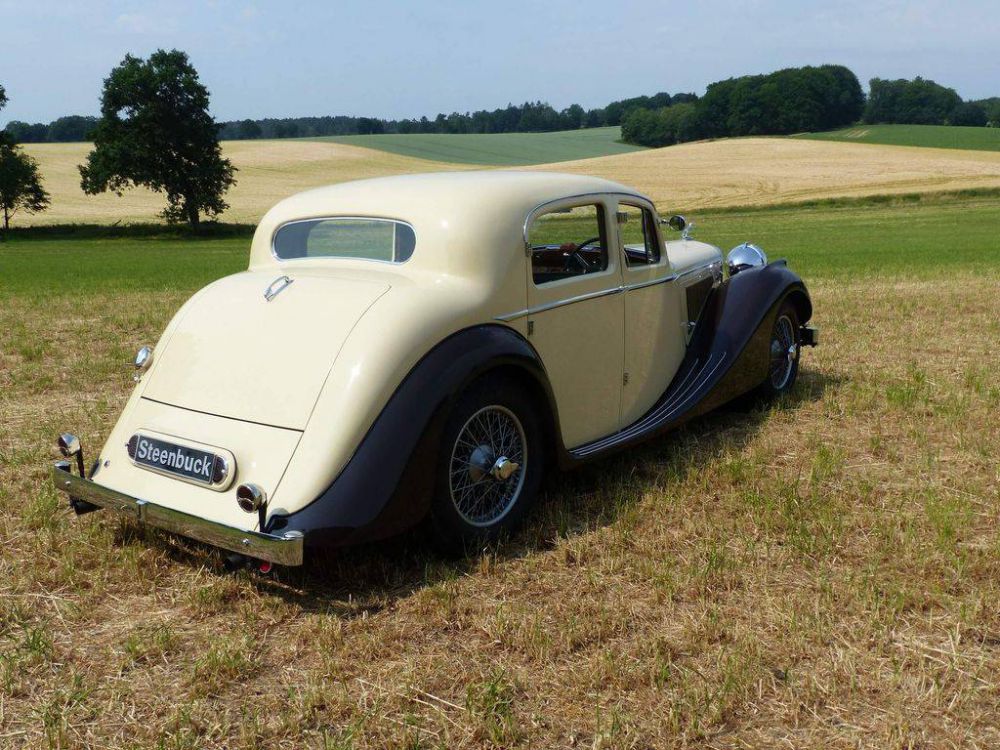 William Lyons founded the S.S. (Swallow Sidecars) brand in 1931. After the war, the brand name was changed to “Jaguar”. During this period, technical work began on pre-war designs. There were the 1½ Litre, 2½ Litre and 3½ Litre limousines, further developed in detail, which were later called Mark IV. They were picture-perfect, extremely elegant creations. The six-cylinder engine with 3½ litre displacement had enormous power for the time. Our Jaguar Mark IV 3.5 limousine is from the first post-war year 1946 and has a Jaguar Certificate. The car was exported by Tozer & Millbourne in Kemsley, presumably to Australia. The classic car has been registered in Germany since 2003, after having been extensively restored. Corresponding documents are available. This Jaguar Mark IV limousine with its charming lines is an endearing classic that can be used in a variety of ways.