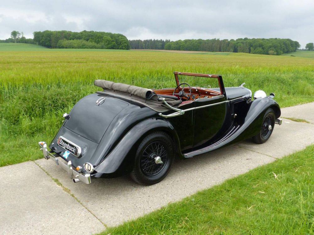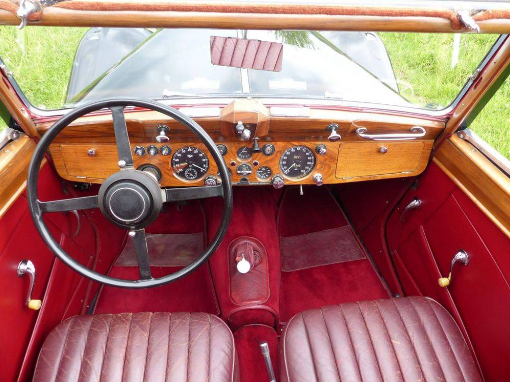 After World War II, the Swallow Sidecars company dispensed with the pre-existing trademark “SS” and “Jaguar” became the brand and company name. The pre-war Jaguar 1½ Litre, 2½ Litre and 3½ Litre models, retrospectively called Mark IV, were offered with improved details. The 3½ Litre variant was a super powerful vehicle for its time. Our Jaguar MK IV Drophead Coupé with 3.5 litre capacity was delivered to the USA and is therefore a sought-after left-hand drive car. This classic car is characterised by a high degree of originality. The classic has been driving in Germany for many years, initially with the owner of a classic car workshop. There, the convertible was also used on long journeys. In the meantime, it has been part of an exquisite collection for about 8 years. We are pleased to be able to offer you an authentic classic!