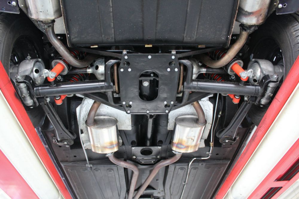 The whole car is truly stunning. The dark blue body color looks fantastic and complements the lines of this Jaguar beautifully. It contrasts brilliantly with the beige interior, which exudes incredible class, partly due to the design but also due to the high-quality restoration work that was performed. In addition to the beautiful fits, the chrome work, such as bumpers, grille, and various accessories, completes the elegance of this Jaguar. In short, the various parts are in excellent condition, as you would expect from a high-quality restoration. The underside of the car looks just as beautiful and good.