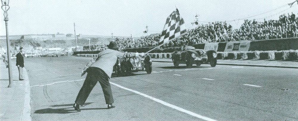 On its racing debut in the Jersey Road Race, Stewart scored a roaring victory, seeing off competition including George Abecassis and Reg Parnell each aboard a new Aston Martin DB3, with teammates Sir James Scott Douglas and Bill Dobson close behind in their XK120s.