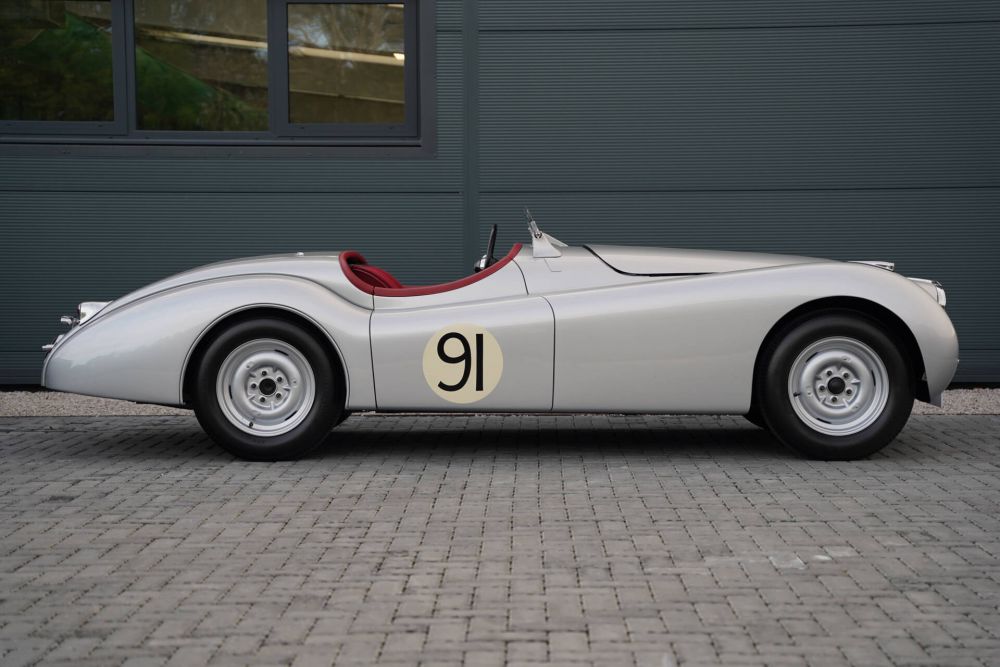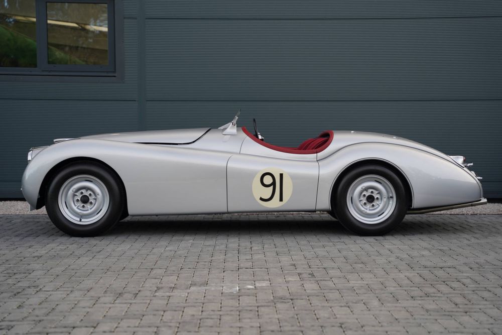 During its restoration 660369 has been finished in an exacting Metallic Silver over red leather/Bedford cord as per the cars Jaguar Heritage Certificate. Sold new by Stevson Garages, Torquay to a Mr J.H.A Risley-Prichard this XK120 was always destined for the motor racing circuits. Risley-Pritchard begun FPN 124’s racing career, a British Insurance Broker and privateer racer who’s career progressed to a seat at the 1955 Le Mans 24 hour race in an Aston Martin DB3S alongside Tony Brooks. The cars racing career is well recorded by notable dates including: