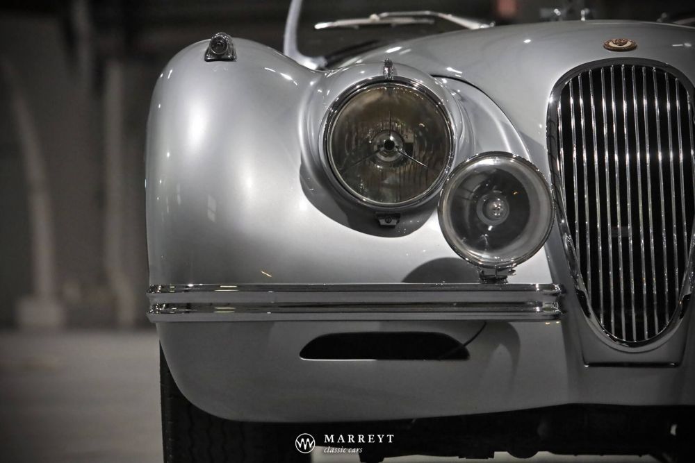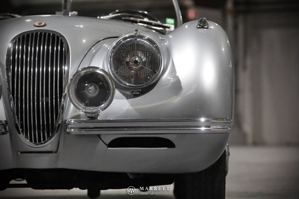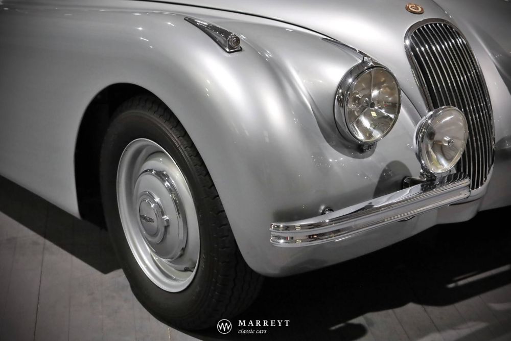 This 'alloy' Jaguar XK120 OTS left the production line at Jaguar in Foleshill, Coventry, on 18 January 1950. Executed in a classy colour combination of metallic silver with a red leather interior. For the soft top, mohair was chosen in gunmetal grey. On 1 February 1950, the car left for Jaguar dealer Max Hoffman in New York.