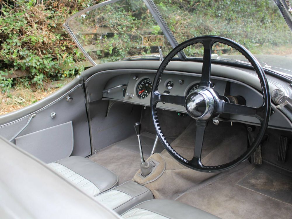 The upholstery looks very nicely aged with good quality older leather seats, smart door cards, carpets and dashboard. The steering wheel is excellent, all gauges are working correctly and the nicely patinated and aged feel to the interior enhances the car giving it an honest, original feel and appearance. Since last selling the XK120 in 2016, a hood frame has been sourced and re-furbished, and a brand-new mohair hood and sidescreens fitted to the car by long established West Yorkshire trimmers Pickering's of Bradford.