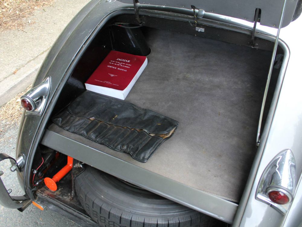 WXG 181 is a very honest, well presented, exceptional driving XK120 that has delightfully aged having been very well preserved and carefully owned. The Gunmetal Grey paintwork has a deep finish and presents very well with a nicely aged, honest feel to it, albeit with a few minor imperfections. The bodywork is in excellent order with super straight panels, the chrome work is good throughout with patina evident, and the underbody is exceptionally clean having had a program of work carried out in early 2016. The chassis rails and boot floor were sanded down, the suspension arms and leaf springs, prepared, treated and detailed. Two coats of seam sealer to the underside of the boot floor and fuel tank under tray were applied and two coats of stone chip underseal was applied to the chassis with three fine coats to under arches and a final coat of gloss black applied underneath including suspension. The result is a clean well-presented underbody and eight years later this still presents well. The work has been documented with photographic evidence.