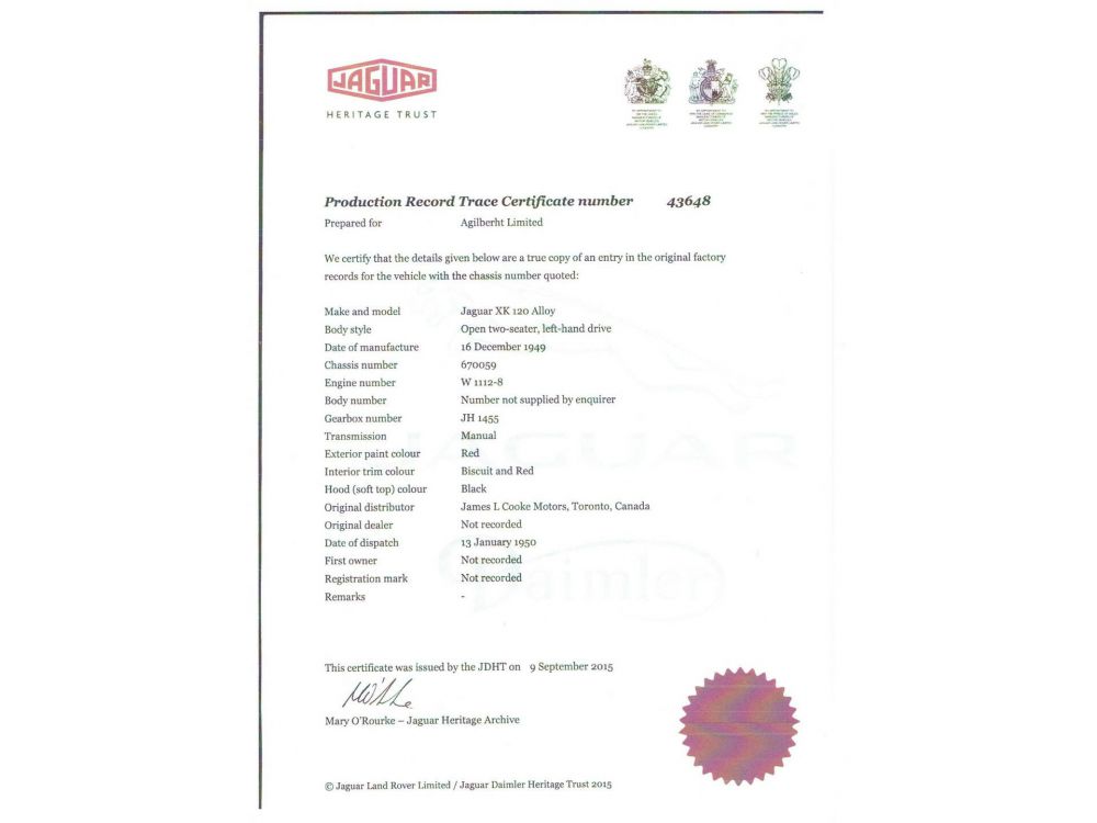 And so we are dealing with a very rare car. Of those 184 copies, this beautiful one in red is also an early one, because 'number 59' was ready on December 16, 1949. In January 1950 the car was shipped to James L Cooke Motors in Toronto, Canada. By the way, we don't have to dig deep for this data, we can get it from the supplied Heritage Trust Certificate.