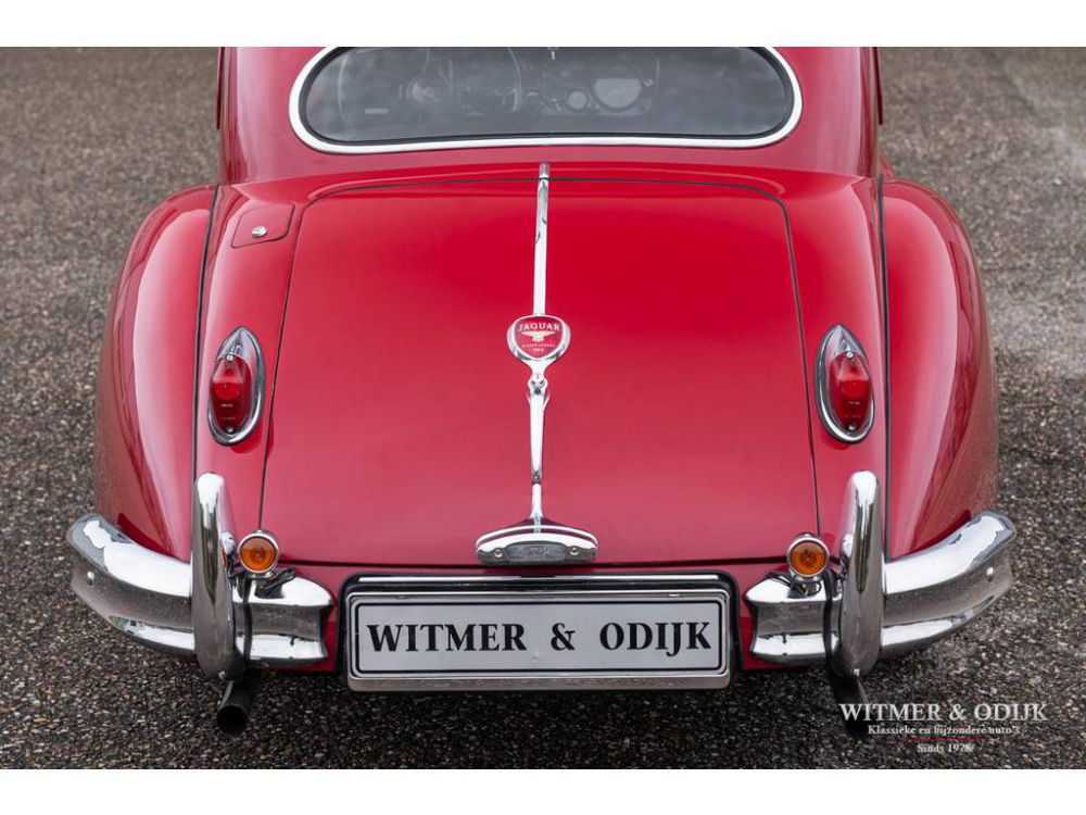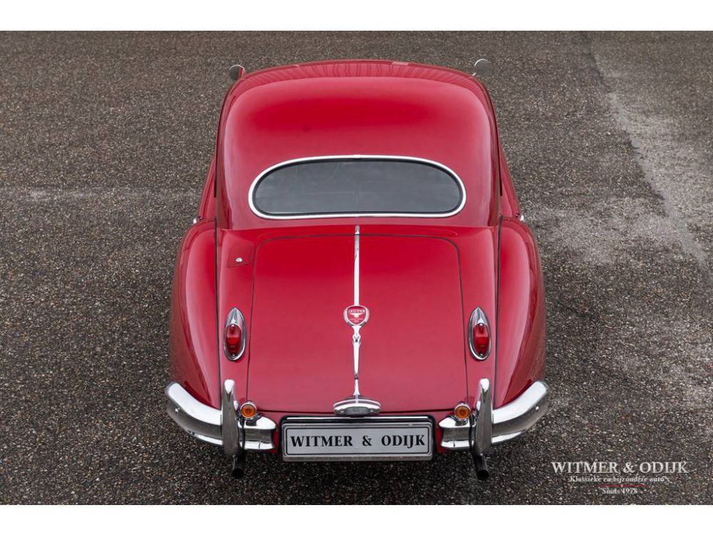 In 1948 introduceerde Jaguar de XK120, in eerste instantie als conceptcar om een nieuw motorontwerp te testen. Het ontwerp werd echter dermate geprezen dat het ook in productie werd genomen. Hoe mooi ook, de XK120 kreeg vooral vanuit Amerika wel wat kritiek te verduren. De binnenruimte was te beperkt, de motor en stuurinrichting behoefde op een aantal belangrijke punten modificaties en bijvoorbeeld de versnellingsbak had geen gesynchroniseerde eerste versnelling. Ingenieurs zitten niet stil, de XK140 werd logischerwijs een betere en comfortabelere Jaguar. Voor wie een XK ook echt wil rijden is de XK140 dan ook een betere keus ten opzichte van de 120. In 1957 brak er brand uit in de Jaguar fabrieken, de complete productielijn en zelfs de plaatwerk mallen van de XK140 werden verwoest, de productie van de 140 werd daardoor beperkt tot slechts 1959 exemplaren. Jaguar greep de gelegenheid aan om de auto op te laten volgen door de XK150, deze is wat groter en wordt daarom gezien als iets minder elegant dan de XK120 en 140. Het hier aangeboden exemplaar werd in juni 1955 geproduceerd en kreeg een S mee voor het chassisnummer, dit indiceerde een motorvermogen van 210pk. Bij de auto aanwezige documenten geven aan dat de auto in Italië werd afgeleverd waarna ze via een bekende Duitse klassieker specialist in handen kwam van een van onze klanten, een Luxemburgse ingenieur. Op zijn verzoek verkopen wii de auto. Diverse facturen en taxatierapporten laten zien dat de auto uitstekend is onderhouden en derhalve ook zeer goed rijdt. De carrosserie is roestvrij, de lakkwaliteit in warm rood echt mooi en onbeschadigd. Het interieur lijkt origineel en is in een geweldig mooie conditie gezien de leeftijd van de auto, ook het hout is niet beschadigd of dof. Gezien de algehele conditie, staat van onderhoud en uitstraling van deze iconische Jaguar een aanbod met een bovengemiddeld hoge prijs/kwaliteitsverhouding. In recente jaren werd de motor geschikt gemaakt voor loodvrije benzine, de uitlaat vervangen voor een RVS exemplaar en bijvoorbeeld het remsysteem gereviseerd. Rijklaar dus bij ons in de showroom. Zie onze website voor meer dan 100 foto's www.witmerodijk.nl of u gebruikt de volgende link, https://witmerodijk.nl/te-koop/jaguar-xk140-fhc-1955/2266