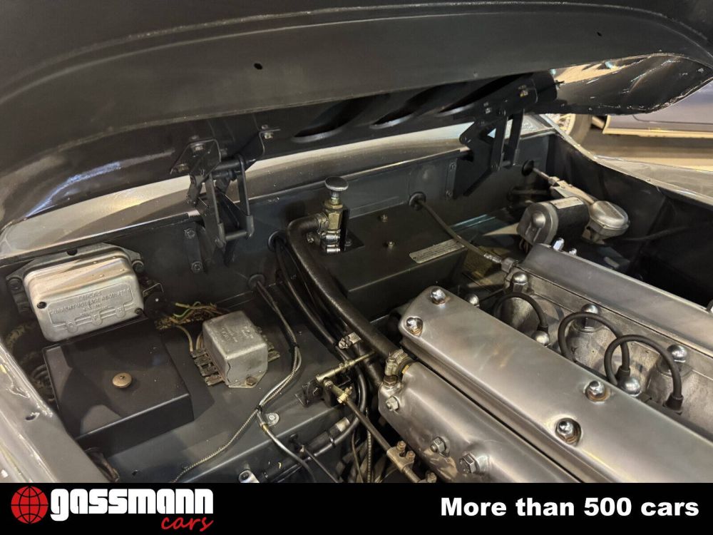 Ursprünglich in Rot gehalten, wurde diese XK140 erstmals in Buffalo, New York, ausgeliefert. 1991 brachte die Tochter seines alten Erstbesitzers den Jaguar in ein Lager, in dem er bis 2002 blieb, als er verkauft und sorgfältig restauriert wurde. Der XK140 wurde 2010 vom letzten Besitzer, einem Schweizer Sammler, nach Zürich übernommen, wo er im Wesentlichen eine neue Restaurierung erhielt. Einnahmen von insgesamt rund 130.000 Euro (!) Dokumentieren die neue Top-, Mechanik- und Showreparatur im ansehnlichen Battleship Gray, den er heute trägt. Fast 30.000 US-Dollar wurden allein für den Innenraum ausgegeben, eine bemerkenswerte Zahl, da der Jaguar seine ursprüngliche schwarze Lederausstattung beibehalten hat. Die ausführliche Dokumentation der sorgfältigen Arbeit zeugt von der besonderen Zuneigung des Absenders zu diesem XK140. Der Drophead behält seinen originalen Matching-Numbers-Motor (gemäß JDHT-Zertifikat), die wunderschön patinierte schwarze Lederausstattung, das vergrabene Armaturenbrett aus Holz, die lackierten Stahlrader und die Spritzer auf den Hinterrädern. Dieser beeindruckende Jaguar ist zusammen mit dem lopcase, dem Originalwerkzeug und den Restaurierungsprotokollen ein hervorragendes Beispiel für den fortschrittlichen Open XK140 und ist auf jeden Fall sehenswert