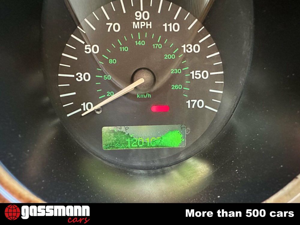 Das sandfarbene Interieur ist ein großer Vorteil, wenn Sie in den sonnigen Süden reisen. Der Vorbesitzer ließ die Lederpolster gegen atmungsaktive Alcantara-Bezüge austauschen. Sie installierten auch einige aktualisierte Lautsprecher und einen Sportauspuff mit TÜV für einen besseren V8-Sound.