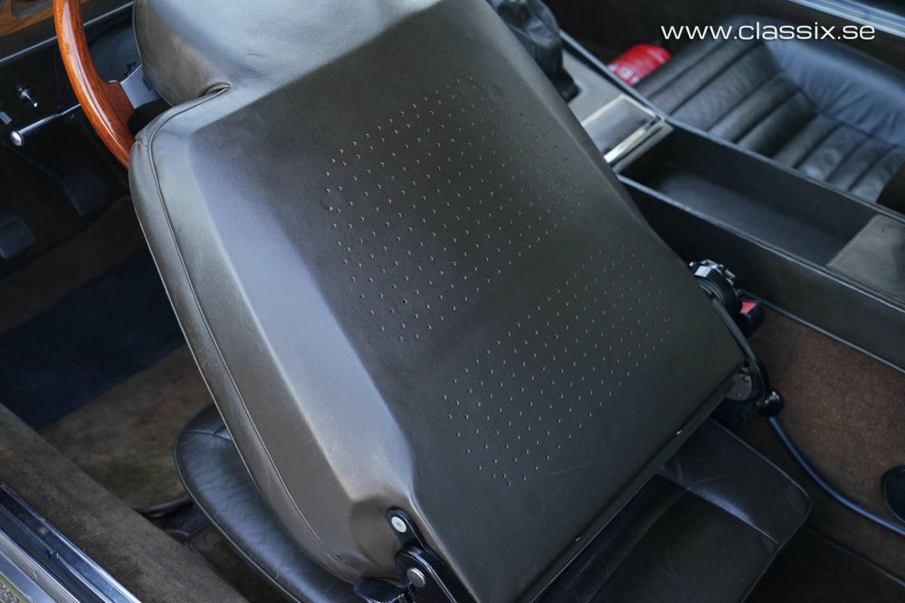 Interior: Here, the Lamborghini Espada’s originality continues. The interior is finished in the amazing color Verde Scuro, a dark olive green that borders on dark brown. Inside, everything is original and in incredible condition, including the leather, headliner, and carpets, all of which are in excellent condition. This car has only covered 51,000 km since new, and the interior is strong proof of that. All small chrome trim pieces are also excellent. The leather on both the front and rear seats looks and feels like new. Of course, the original “snakebite” pattern is present on the leather seats, something difficult to replicate and often missing in restored interiors. The instrument cluster on the Series 2 Espada is, in my opinion, the best of any Espada. The large wood panel resembles a beautiful 1970s design furniture piece. Inside, we also find air conditioning, which has recently undergone major work to convert it for use with modern R134a gas. Now, the AC works perfectly and it is definitely a modern convenience you want in your classic Lamborghini. The interior of this car has also received a preservative restoration, with interior pieces removed, thoroughly cleaned, detailed, and treated to ensure longevity.