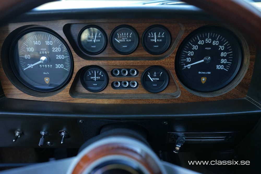 Engine and Mechanics: This is where the significant investment has been made in this Lamborghini Espada. The car underwent a full technical revision after a long period of inactivity. After the major work was completed, the car was taken back and forth to the workshop to resolve minor issues and ensure everything was properly tuned. During this technical revision, the engine was disassembled and rebuilt with new bearings, new cylinder sleeves, pistons, and more. The gearbox was removed, inspected, and fitted with new synchronizer rings, along with a new clutch. All chassis and handling components, including bushings and shocks, have been replaced. The brakes and brake booster have been restored. After this, extensive work was done to break in the new components and fine-tune everything. All this work has been conducted by a renowned Swedish workshop specializing in Ferrari, Lamborghini, and Porsche.