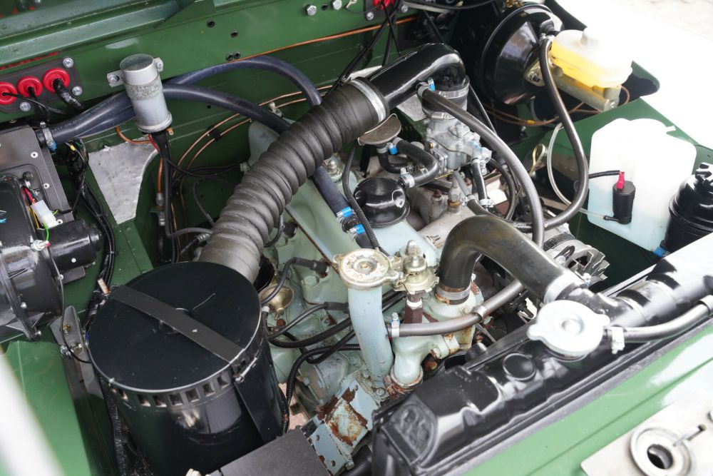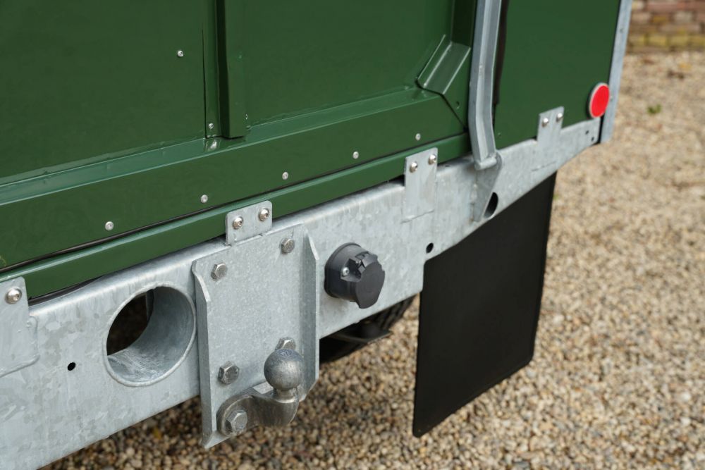 What makes this Land Rover truly special are the numerous upgrades and modifications made during the restoration. The car is equipped with a galvanized chassis, ensuring unmatched durability and rust protection. The addition of power steering and power brakes makes driving much more comfortable and safer. Moreover, the car features LED lighting, a heavier-duty heater, and a completely new engine, enhancing reliability and driving comfort. The exterior of this Land Rover is breathtakingly beautiful. It is clear that this Land Rover holds a prominent place in our showroom, right next to a Ferrari and a Facel Vega.
