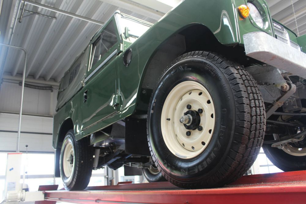 The car has been repainted in the classic Bronze Green color, which perfectly matches its robust character. The interior upholstery is stunning and practically in new condition, which is rare for a vehicle of this age, especially since a Land Rover like this is often used as a workhorse. The seats are incredibly beautiful, adding a touch of luxury to the otherwise functional interior. The tires and wheels are in very good condition, and the windows and roof are also in excellent shape. The driving experience of this Land Rover is phenomenal for a vehicle of this caliber. Thanks to upgrades like power steering and power brakes, the car feels very smooth and responsive, regardless of the terrain. The heavier-duty heater ensures that you remain comfortable even in the coldest conditions. The LED lighting significantly improves visibility, which is crucial for off-road adventures.