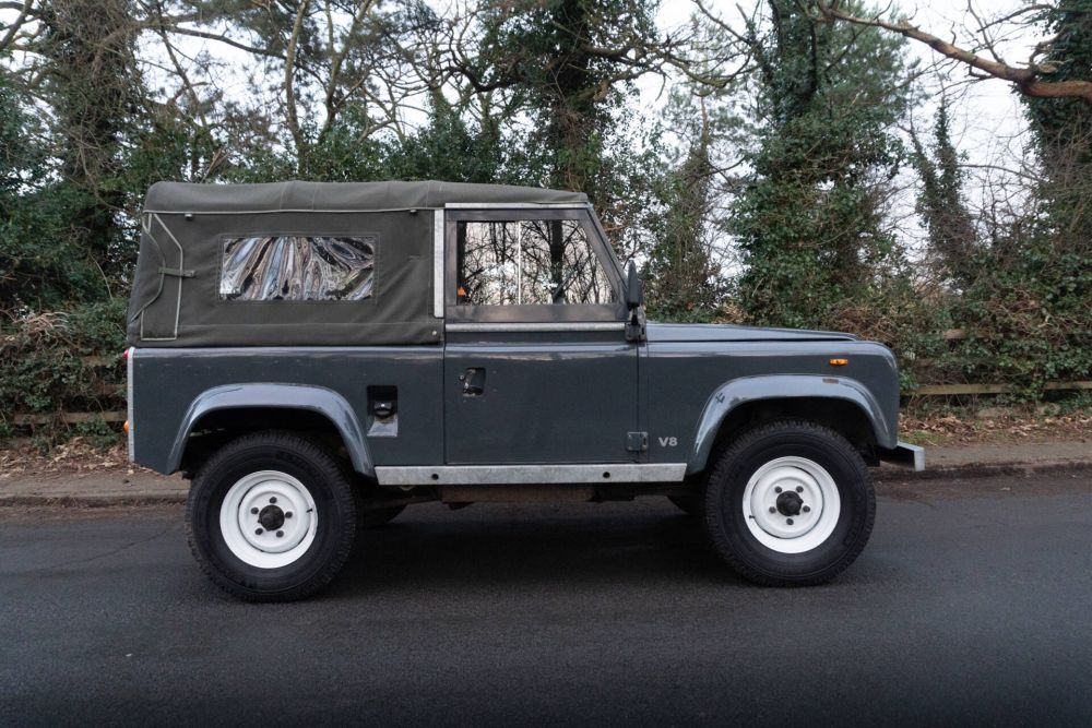 We are incredibly pleased to present this beautifully restored Land Rover 90 V8 to the market. Having appeared in the Classic Land Rover Magazine, this is as you would expect, a genuinely nice show standard Land Rover that looks great, has a lovely interior, and drives excellently. Having been originally built in 1985 as a Land Rover 90 V8 Station Wagon, in 2017 this Land Rover has been rebuilt as a soft top with some other lovely upgrades. It has been rebuilt onto a Galvanised Chassis, has had its suspension completely overhauled, has stainless steel manifolds, and the engine has been rebuilt by Hitech Engines. It has covered less than 3000 miles since its recommissioning, the Slate Grey Paintwork has a deep finish and presents remarkably well, the Spartan Interior is unmarked after being well preserved, and the driving of it is fantastic.