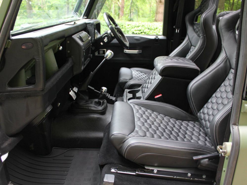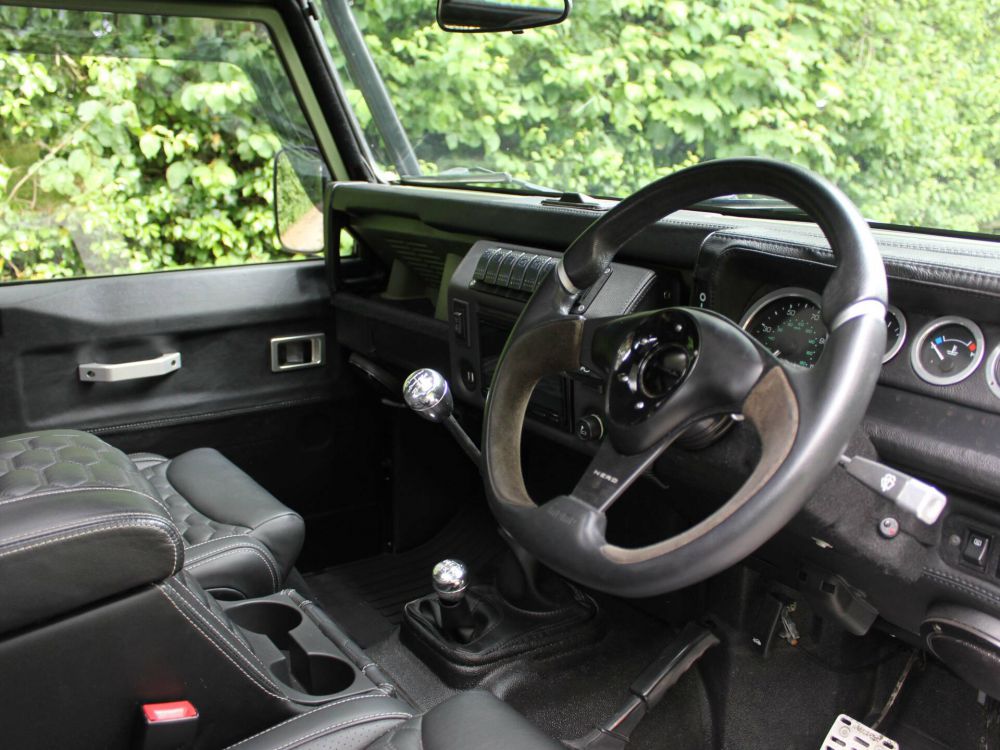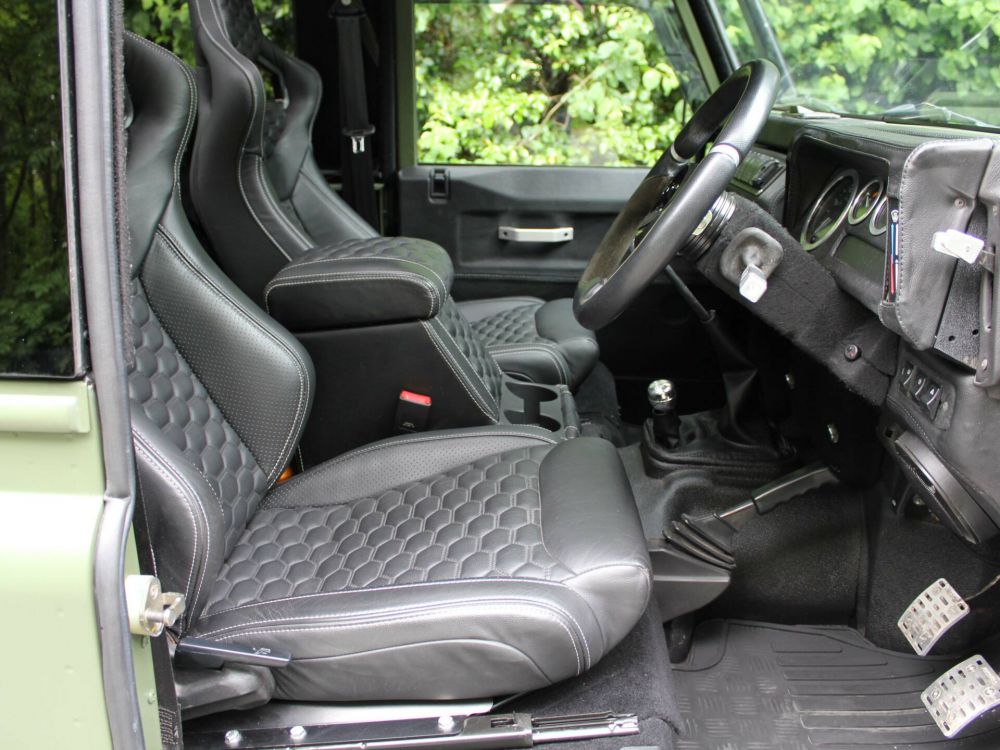 Externally this is a real eye full with Matt finished paintwork, winch bumper, extended mud flaps, bonnet vents, side vents and chequer plate bonnet. The 90 also features extended wheel arches, Khan wheels and remote central locking and an insurance approved alarm has been fitted for extra security. The finish is outstanding, the bodywork is exceptional with no corrosion issues and added confidence can be taken from the new galvanised chassis. The body panels are perfectly straight and the Panoramic door, roof and rear windows superbly enhance the car. The interior is beautifully finished with added comfort and on the road the Defender is impressive and in excellent mechanical order as expected with the low mileage since rebuild.
