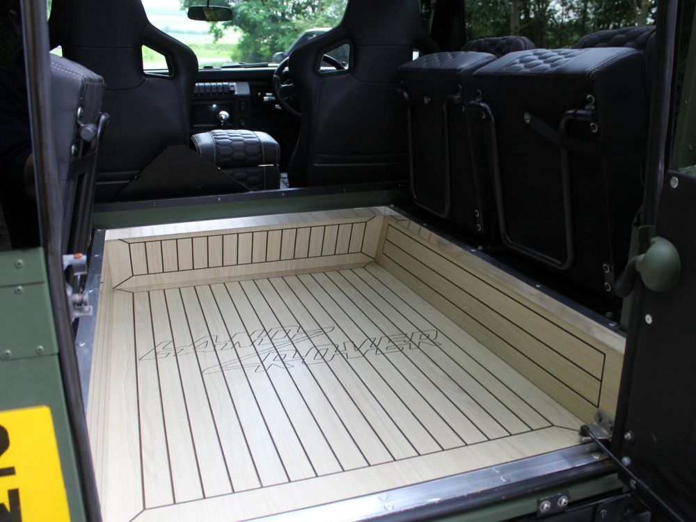 This was a no expense spared rebuild on a brand new galvanised chassis, the TD5 engine and gearbox were fully rebuilt and mechanical upgrades include vented and cross drilled disc brakes, braided hoses, Deweb manifold, stainless steel exhaust system, heavy duty steering arms and upgraded suspension. It has also been further enhanced by a Panoramic roof, rear door and windows, LED lighting, leather dash and door cards, leather centre console switch panel, leather stereo surround panel, leather seats and quick release steering wheel. The 90 also features Puma doors, electric window upgrade, heated windscreen, heated seats, a stunning bespoke wooden rear floor and the interior is finished with stainless steel gear knobs, vent knobs, clock bezels, door pulls, handles, pedals, hinges, fuse box knobs and rear finishing strip, Apple Car Play, carpets and front mats.