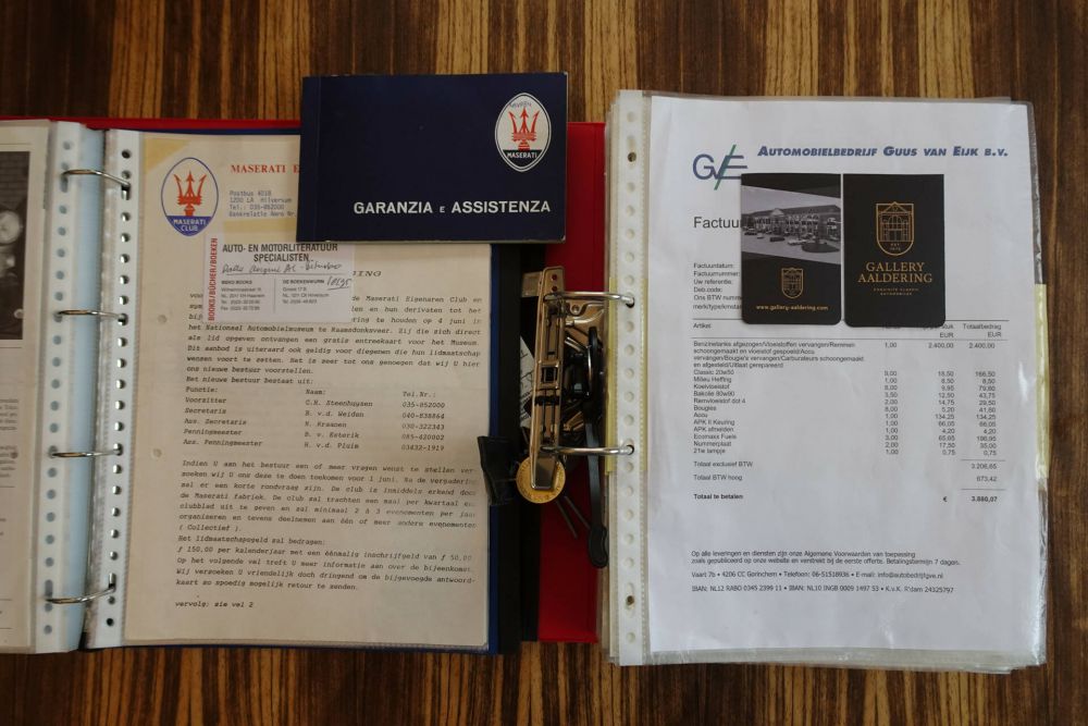 Our example is an original Dutch car and one of only 200 built. The car looks truly stunning in silver-grey with black leather upholstery and in a lovely and good condition. In 1978, this Maserati came to the Maserati importer in the Netherlands. With two large documentation folders, this car is extensively documented. We see that a recent comprehensive service was carried out by a renowned specialist. Additionally, there are numerous invoices with the car, even from when the car was only a few years old. We also find various road tests, tuning data, a valuation report, and the original Maserati warranty booklet.