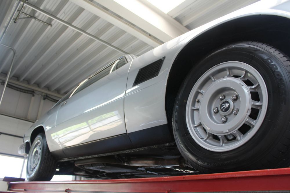 The mechanical aspects are very well maintained as well. The 4.2-litre V8 engine delivers 265 hp, making the Kyalami a perfect companion for longer distances. This is a stylish GT with a true Italian engine. The overall technical condition of the car can only be described as very good. The engine runs beautifully, has great torque, and the transmission shifts precisely. The brakes and chassis are also well cared for and perform as they should.
