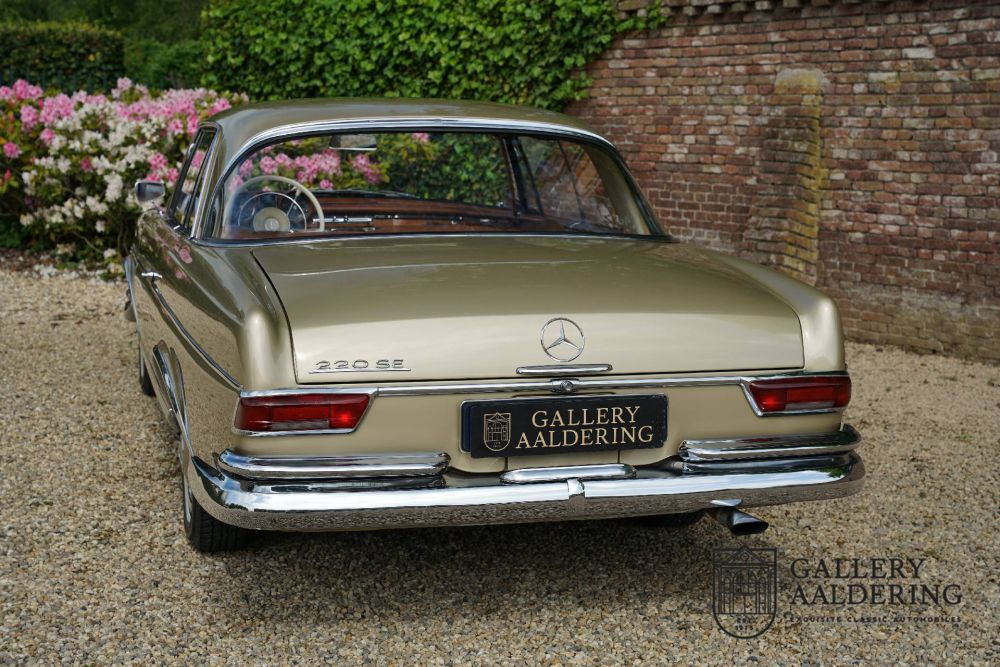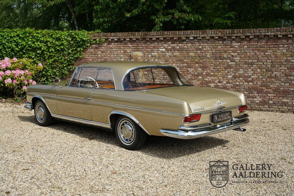 We have a very fine 1963 Mercedes-Benz W111 220SE Coupé. This older restored car has been very well maintained ever since. The car has a “Tunis brown” finish with brown leather interior trim. The bodywork is fine. The panelwork does show a few blemishes here and there but overall is in good shape. The bright work is also still very neat. Inside the car, all looks wonderfully spruce. The wooden dashboard mouldings are neat and the brown leather has developed a lovely patina. The matching carpets are also in good condition. The original radio and the good state of the roof lining deserve a mention. This Mercedes-Benz W111 220SE Coupé also has a factory-installed sunroof. The car is powered by a 2.2 litre M127 straight-six attached to a 3-speed automatic. The car produces 120 Ps and runs as smooth as silk. Thanks to its supple engine the 220SE Coupé is a great car to enjoy touring in. The W111 is not for nothing still a very popular classic. It is not only its fantastic looks of the Heckflosse Coupé that makes it so popular but also its great driving characteristics and a large amount of fans and experts that make owning a W111 a true feast. This is a very fine Mercedes-Benz W111 220SE Coupé in great condition with a wonderful finish.