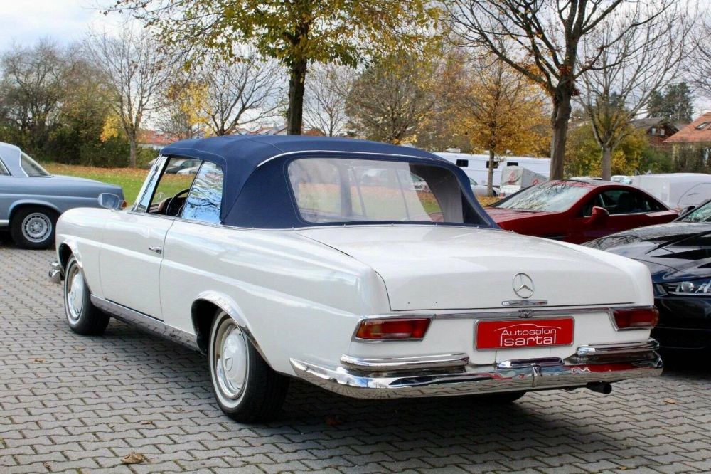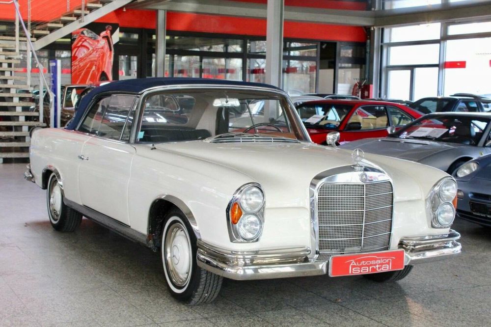 220 SEb orig. Werkscabrio - einer von 2.740 Stck. - überwiegend in Handarbeit produziert, (kein Coupe-Umbau, kein US-Import !) französische Auslieferung, seit über 40 Jahren in südfranzösischen Familienbesitz, 6-Zylinder-Einspritzmotor, weiß -050-, Leder dunkelblau, Verdeck + Leder dunkelblau, Wurzelholz, Servolenkung, Scheibenbremsen, 300 SE-Radlaufchrom, orig. Blaupunkt-Radio, Sicherheitgurte hinten, orig. Scheckheft + Datenkarte vorhanden, 1979 wurde ein orig. Werks-AT-Motor verbaut laut Aggregatepaß, vor ca. 15 Jahren Restauration von Karosserie- + Lack, 2015 Erneuerung von Leder ( orig. Rosner-Leder mit Pfeifen), Verdeck (Sonnenland) sowie Teppiche in Spitzen-Sattlerqualität ! + Holz und viele Chromteile + technisch überarbeitet, - tolle authentische Ausstrahlung ! - großer Service, TÜV + H-Kennzeichen 2021 neu durchgeführt - Fzg. ist z. Zt. im Raum München zugelassen