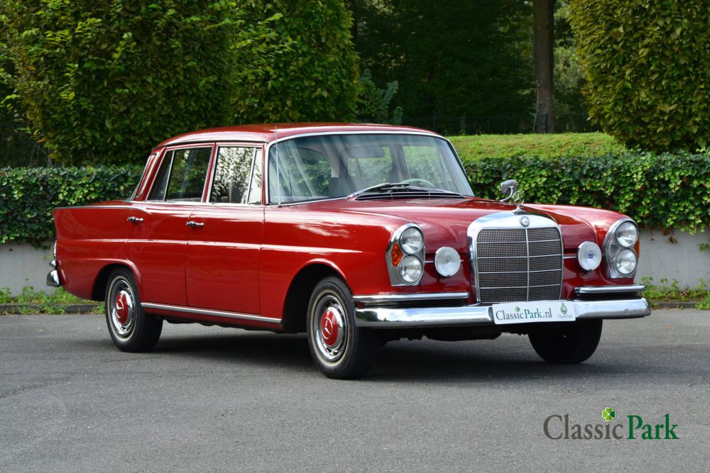 This 1962 Mercedes-Benz 220 SE is commonly referred to as a 'Heckflosse', which refers to the 'tail fins' at the rear. Both the bodywork and the leatherette interior are in good condition. This Heckflosse has the larger 2195 cc six-cylinder under the hood, which is linked to an automatic gearbox with steering gear. The car sports power steering. The 220 SE is on Dutch registration.
