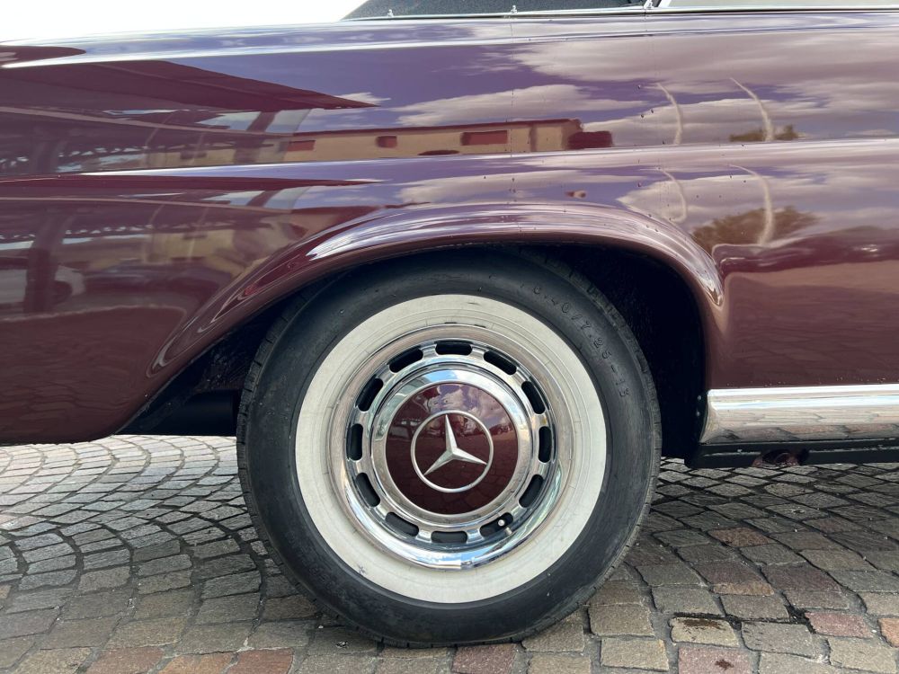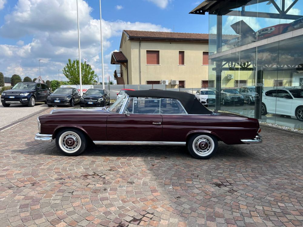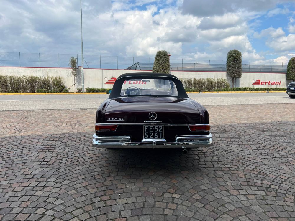 MERCEDES BENZ 220 SE CABRIOLET DI COLORE BORDEAUX METALLIZZATO CON INTERNI IN PELLE NERA