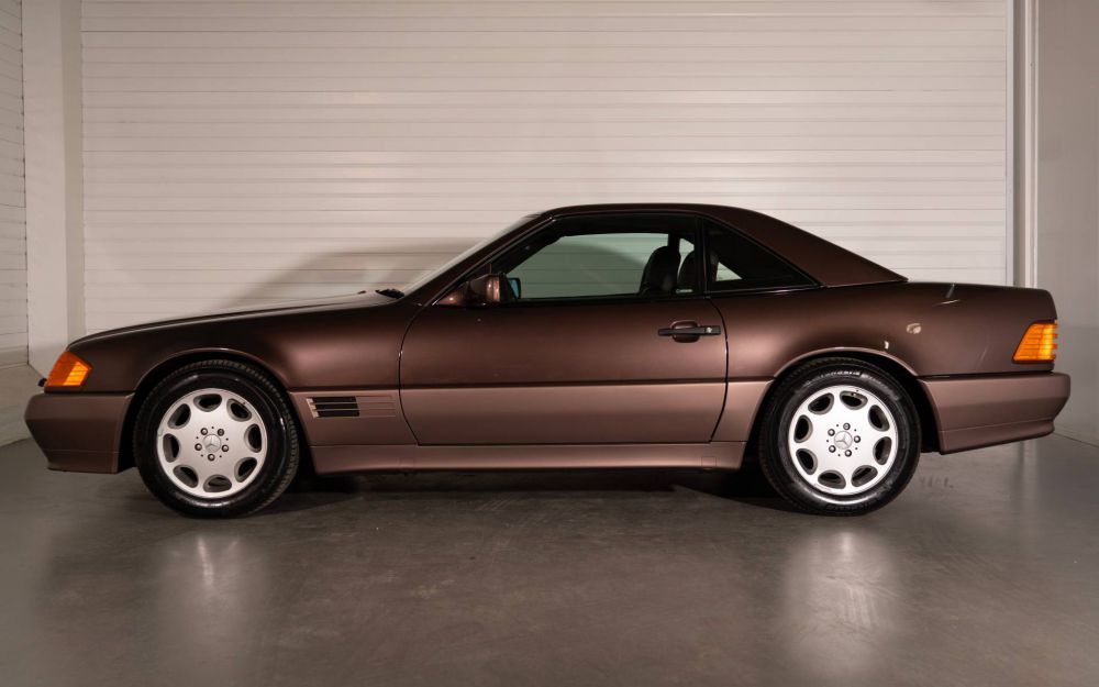 The model presented here is a first-generation 300 SL 24 with an in-line six-cylinder engine developing 231bhp. It was delivered in Paris on 4 March 1993 finished in a magnificent metallic brown, perfectly matched to its ‘Brazil’ leather upholstery. This combination of colours is original and unusual for the model. The car is comprehensively equipped, with a five-speed automatic transmission, automatic climate control, electrically adjusted seats and a rear bench seat allowing two adults and two children to be carried in complete safety. This convertible has covered only 7500km (4700 miles) and has had only one owner. It is therefore in remarkable and near-new original condition. Its unique condition, as well as its colour scheme and the options fitted make this an extremely attractive convertible. It would be especially well suited to a true collector seeking excellence and exclusivity. It will be sold serviced and with a 12-month warranty.