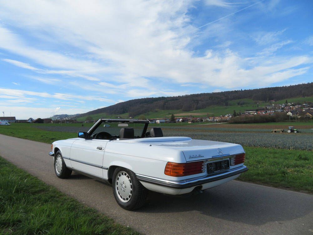 Äusserst schönes Fahrzeug im Originalzustand aus 1. Hand! Dieser Wagen wurde in Deutschland an die 1. Besitzerin ausgeliefert und kam vor über 10 Jahren als Umzugsgut in die Schweiz. In all den Jahren hat man den SL immer gut gepflegt und nur im Sommer gefahren. Nach 8 Jahren Stillstand wurde der Wagen im Herbst 2023 in Stand gestellt und frisch vorgeführt (Rechnung von CHF 8'000.- vorhanden). MFK 10.2023 Veteran. (Hardtop selbstverständlich vorhanden).