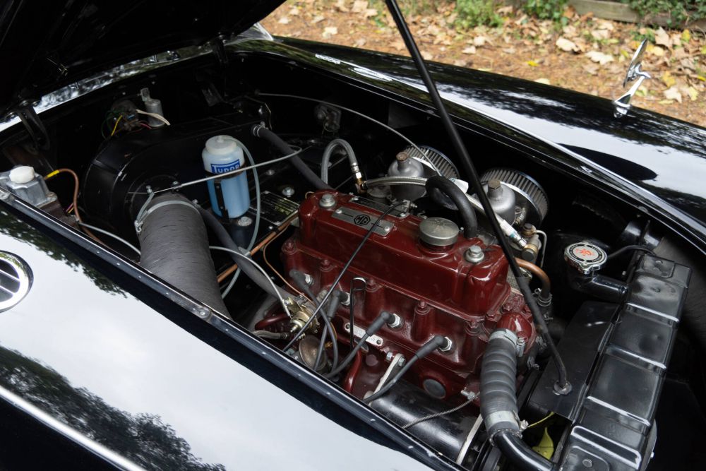 This MK1 MGA 1600 Roadster is beautifully finished, 10 years on it still presents superbly with exceptional bodywork, panel gaps and a first class chassis. The Black paint finish is stunning, brightwork and chrome wires are excellent, and the high quality expensive Red leather trim is stunning. The MGA comes with full weather equipment, all mohair, stainless steel boot rack and still retains a high class engine bay finish. On the road its exceptional with only 2100 miles since a full engine rebuild, gearbox rebuild, axle overhaul and fully rebuilt braking, suspension and steering systems. Ancillaries were all renewed, the wiring loom replaced and essentially, the whole entire car was taken to a show standard condition. Ten years and 2000 miles on, it still drives like a fresh rebuild that has now nicely run in.