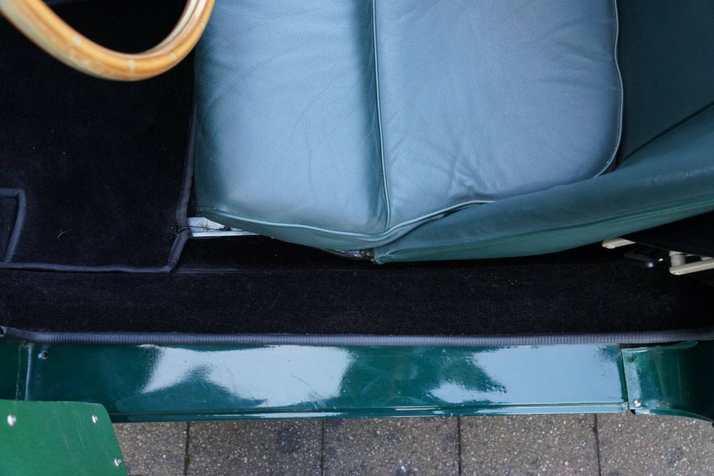 First, the exterior. The paint is of good quality, shines nicely and the British Racing Green gives this MG the ultimate classic feeling. The chrome work, such as the bumpers, mirrors and headlight rings, still look good. The fits of the various body parts are also good. The underside of this MGA can be described as neat.
