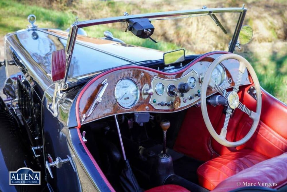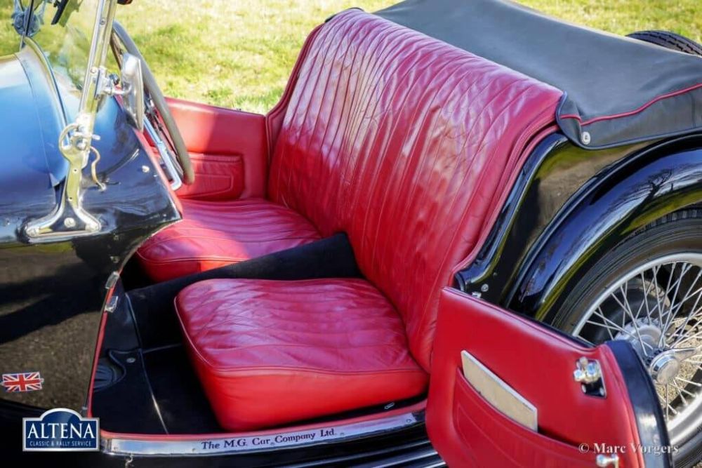 MG TC, year 1949. Chassis (VIN) number TC9511, engine number XPAG10143. Black exterior colour combined with a red leather interior trimmed with black carpet. Black mohair hood, side screen frames, and hood cover. This MC TC was sold new in the USA and is currently registered in the Netherlands. According to the title of a book about the MG T-series, they were “The sports cars the world loved first”. American WW2 soldiers were totally smitten by the light, compact, and agile MG T series cars and many were shipped to the USA after the war. Starting with the post war MG TC the British sports car became a bestseller in the United States. This wonderful example was restored in the past, and the engine was overhauled. The car is in a very good condition, and it drives delightfully! This MG TC shows wonderful original details and some slight traces of previous use. The mechanicals have received some proper upgrades with the fitment of a more powerful modern starter motor, modified (lighter and more precise) steering gear, and a free flow exhaust manifold to improve engine performance. The car is fitted with new 19-inch wire wheels shod with Dunlop 4.50 x 19 tyres. This MG TC brings a fantastic vintage open top driving experience. The sight on the wood dashboard with its array of chrome bezel gauges, and the look over the bonnet take you back to the golden years of motoring!