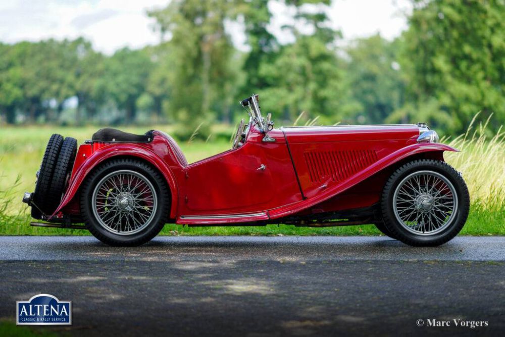 MG TC, year 1946. Chassis number TC0559, engine number XPAG1141. Colour dark red combined with a matching dark red leather interior, trimmed with black carpet. Black mohair hood, hood cover and tonneau cover, black side screen frames. This gorgeous MG TC was sold new in the United Kingdom. The car is registered in the MG-T Register. In the years 2008 – 2010 the MG TC was nut and bolt restored to factory specifications in the UK. Costs nor effort was spared to make the car perfect. The restoration is superbly documented, a photo album showing the full restoration is present as is a file with all the invoices! This MG TC shows all the original details and is fitted with twin spare wheels mounted at the back. Since completion of the restoration the MG TC has brought the previous owner many unforgettable moments on the winding British country roads. The car was perfectly serviced and pampered by the owner. This MG TC is in an excellent condition showing only slight traces of previous use. The car was recently imported from the UK to an EU country, this super original MG can be imported to, and registered in any country worldwide. This stunning MG TC is ‘turnkey’ ready to be enjoyed to the fullest!