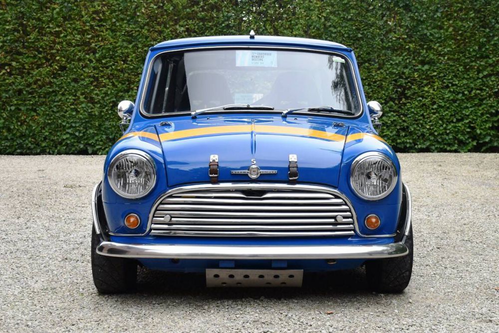 This Mini is quite a special machine. It started life as a humble Mini 850, and converted by the owner to the ultimate Mini for use on road and track. The engine is replaced by a 1275 A bored to 1293 ccm. Inside this engine, Omega die cast pistons are fitted in combination with Swiftune SW10 camshafts, double chain timing with tensioner and a Swiftune A+ oil pump. The cilinder head is a modified 12G940 A-series with heavy duty studs. There is also a Swiftune CSI ignition fitted. The engine is breathing through two big SU HIF44 carbs fitted with trumpets, and the fuel pump is a very reliable Facet. The gearbox is a DAM5626A + rod change with straight cut gears, and a Quaife ATB differential is also installed. The Verto clutch is to race specification and so is the MED ultralight flywheel.