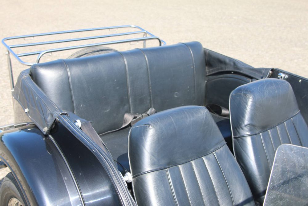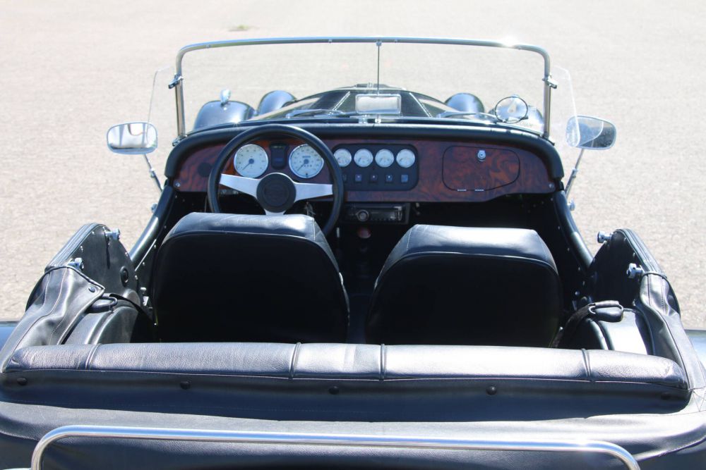 This Morgan 4/4 has undergone an extensive restoration costing over 43,000 euros. It includes new aluminum panels, a galvanized powder-coated chassis, and a fresh wooden dashboard. The restoration also introduced a new gas tank, upgraded interior trim, and a set of new instruments. New seats and a fresh wooden dashboard complete the classic look. Chrome bumpers and a rear luggage rack complete the look. The meticulous restoration ensures this 4/4 retains its original charm while offering modern reliability.