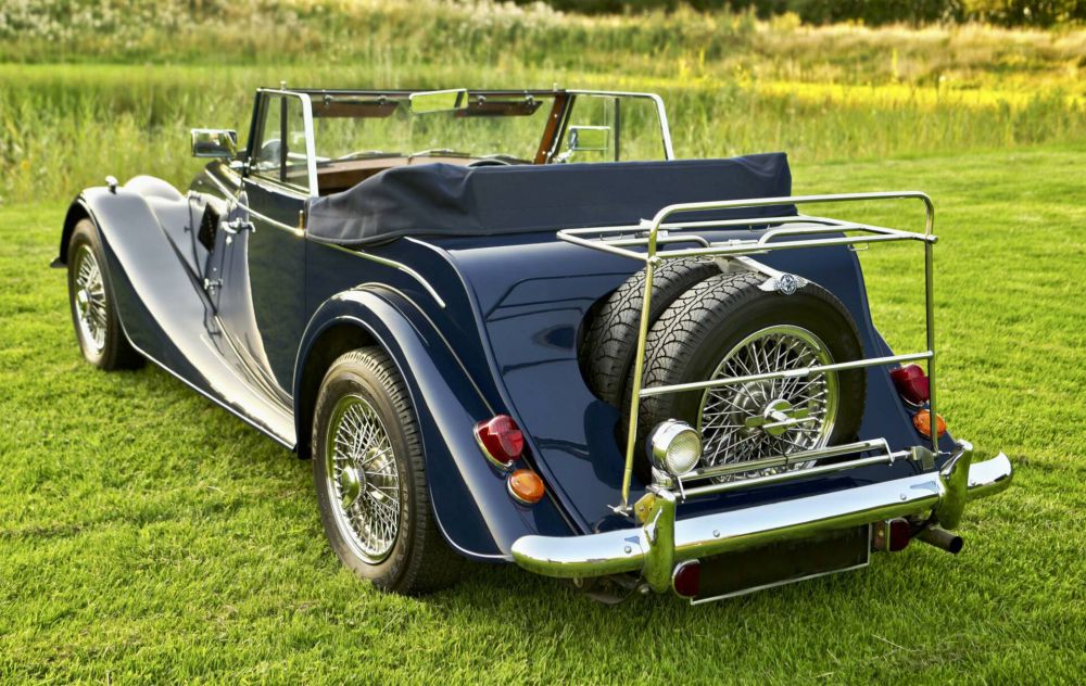 1954 Morgan Plus 4 Drophead Coupe Registration Number: 906XWB A perfect car coming with an incredible set of restoration bills covering over £40k for parts alone! Needless to say this is a perfect car with everything possible that could be done having been done & thus it is is not far off the equivalent of buying a new Morgan. The supplying dealers plaque is found on the dash board as is an HRD Vincent logo so we assume the previous owner was also a motorcyclist. Owning and riding a Vincent as I do I can assure you he was clearly a man of some taste. The car has been finished to a very high standard in a mid blue non metallic which suits it very well. To the interior are pale blue leather front & rear seats along with grey carpets. Under the bonnet sits the fully rebuilt Triumph TR2 engine in a highly detailed & immaculate engine bay. A kenlowe fan with rheostat has also been fitted to assist with cooling on hot days in traffic. Twin driving lamps linked to the main beam have been installed up front & a reversing light to the rear. A close to new condition Mohair hood is found under the snug fitting hoood cover. All chrome work was been removed & replated. The car sits on a set of new Chrome wire wheels with knock off spinners. A simply massive history file comes with the car detailing fully the eye watering expenditure lavished upon the car. There is also a book of minutely detailed notes documenting the works done to the car along with annotations for the incremental expenditures. The odometer was zeroed at the time of restoration & now reads a scant 19,156 miles. The car has a large luggage rack making it well suited to touring. Dual spare wheels sit under the luggage rack. There is also ample room on the rear seats for extra luggage should it be required. The car starts readily & makes all the right noises. Being so light it has excellent performance allied to very nimble handling. You will struggle to find a better condition or better sorted period Morgan like this.