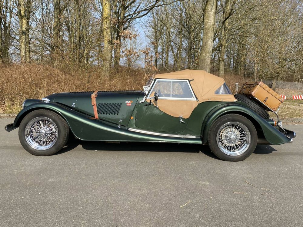 Excellent Morgan Plus 8 with 47,541 miles on the odometer. The car has the factory 3.9-liter V-8 Rover engine and a 5-speed manual transmission. It is in excellent mechanical and cosmetic condition, and a full inspection and service have been completed. Soft-top, side windows, tonneau, and suitcase are included.
