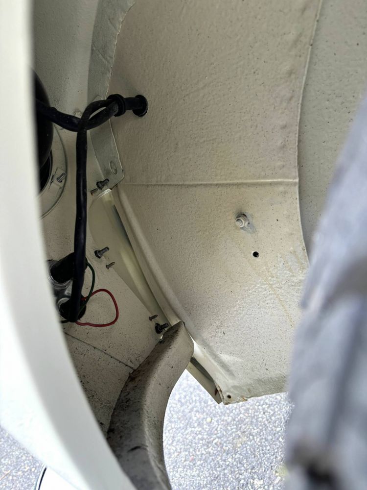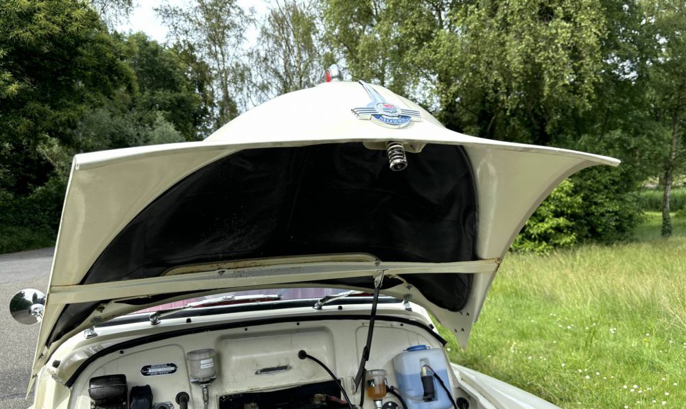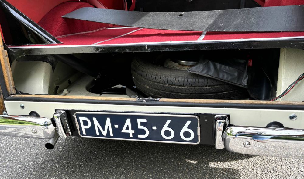 The Traveller was repainted in the original colour Old English White during the restoration and the quality of the paintwork is of a high standard. The paint looks clean with a few signs of use. The familiar ash frame was also completely renewed, as were the chrome bumpers. New rims with new tyres were then fitted with the beautiful chrome hubcaps. Everything done correctly and with an eye for detail.