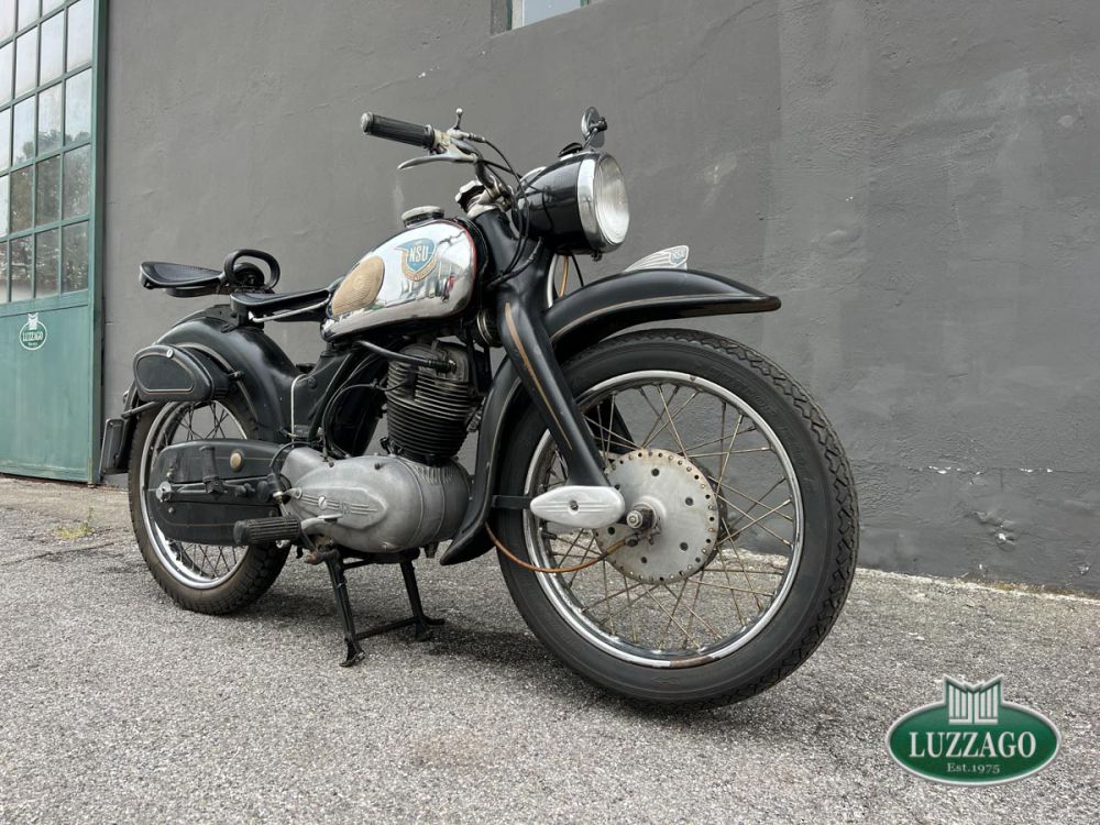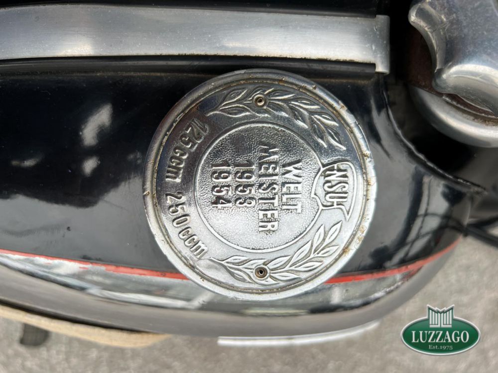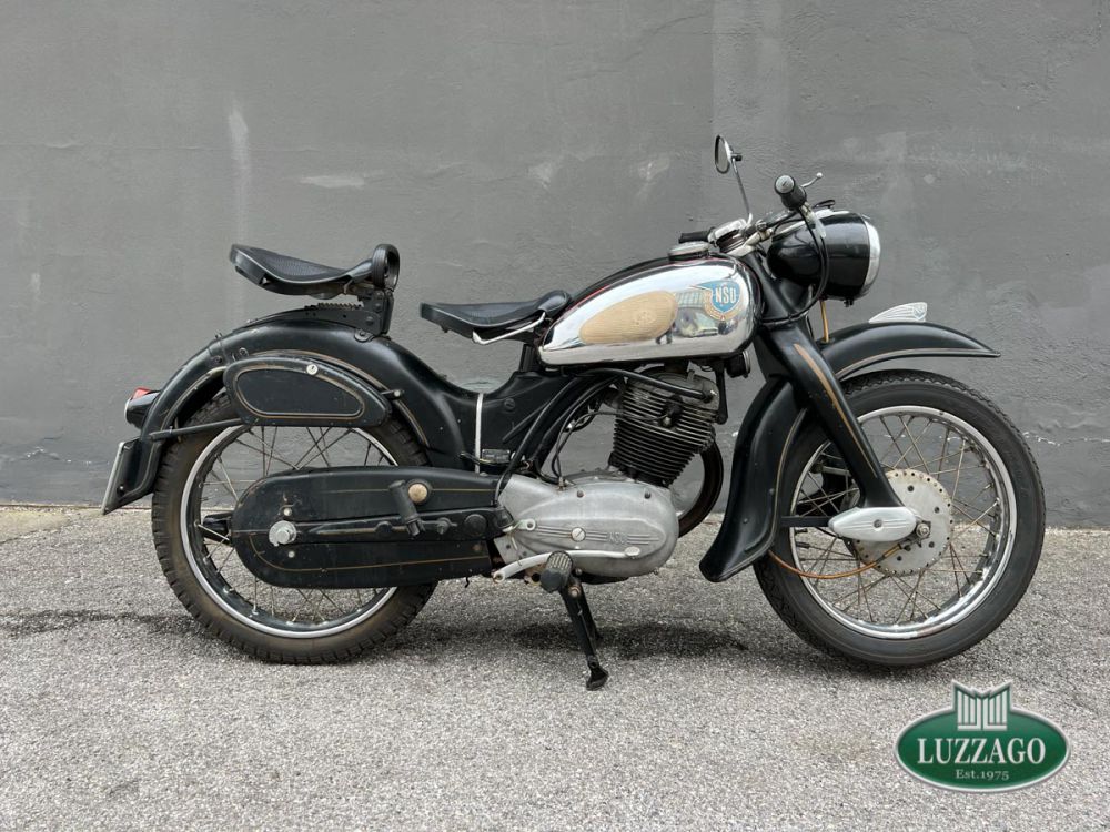 NSU 250 Max motocicletta immatricolata per la prima volta in Italia nel 1956 e poi targata Bologna per cambio provincia nel 1959. Possiede ancora oggi targhe di seconda immatricolazione. Moto interamente originale in ogni sua parte, conserva la patina della verniciatura. Perfettamente funzionante. STORIA DEL MODELLO:Ricostruiti gli stabilimenti distrutti durante la Seconda guerra mondiale, la NSU riprese la produzione motociclistica nel 1949 con la Fox 98 cc. Per inserirsi nel settore delle quarto di litro, molto popolare nella Germania Ovest dei primi anni Cinquanta, la Casa di Neckarsulm si affidò a Albert Roder, il quale realizzò due modelli che condividevano telaio, sospensioni e freni: la Fox 250 con motore a due tempi e la Max 250 a quattro tempi. Quest'ultima fu presentata al Salone di Francoforte 1952, entrando in produzione l'anno successivo accompagnata da una massiccia campagna pubblicitaria e avvantaggiata dalle ottime prestazioni: con i suoi 15 CV è la quarto di litro più potente in commercio. Ciò si riflette dal punto di vista commerciale: nel solo 1953 se ne vendono 24.403, facendo di essa la 250 più venduta in Germania. Per la stagione 1955 la NSU, ritiratasi ufficialmente dalle corse a fine 1954, presentò una quarto di litro derivata dalla Max di serie, battezzata Sportmax, affidandola a Hermann Paul Müller, John Surtees, Sammy Miller e Hans Baltisberger, che ottenne il titolo iridato della categoria con Müller. Storia del modello e curiositàIl Galletto nacque dal progetto del fondatore della Casa Carlo Guzzi, che decise di combinare i vantaggi di una moto a ruote alte con quelli di uno scooter, eliminando gli inconvenienti di entrambi: il mezzo forniva infatti protezione al guidatore, facilità di utilizzo, disponibilità di una ruota di scorta (montata tra la ruota anteriore e la parte frontale del telaio anche se considerata un accessorio da acquistare a parte) tipici di uno scooter uniti alle prestazioni, al comfort e alla tenuta di strada di una motocicletta.L'evoluzione della motocicletta fu frutto di una gestazione avviata già verso il 1947: a quest'anno risalgono i primi esperimenti in Moto Guzzi di un veicolo con le caratteristiche del Galletto, ma sviluppato in 125 centimetri cubici.Il prototipo fu presentato al Salone di Ginevra 1950 e riscosse subito un notevole successo, grazie alle sue doti di comfort e resistenza. Presentato con un motore di 150 cm³, entrò in commercio qualche tempo dopo con un motore portato a 160 cm³[1].Al Salone di Milano 1952 fu presentata una versione rivista del Galletto, con motore portato a 175 cm³ (7 CV, 85 km/h) con cambio a quattro marce dotato di impianto elettrico con funzione di emergenza in caso di guasto della batteria. All'inizio del 1954 il motore fu ulteriormente maggiorato, arrivando a 192 cm³ (7,5 CV) e acquisendo l'alimentazione elettrica fornita da una dinamo da 6 Volt.Nel 1956, dal motore del Galletto, fu sviluppato e messo in commercio il motocarro Ercolino.L'ultima versione del Galletto risale al 1961, riconoscibile per varie modifiche estetiche (avantreno, manubrio, parafango posteriore, sella) e meccaniche, di cui la più importante fu l'applicazione dell'avviamento elettrico.Con il passaggio di proprietà della Moto Guzzi dalla famiglia Parodi alla SEIMM venne decisa l'eliminazione di tutti i modelli ritenuti obsoleti o poco redditizi, tra cui anche il Galletto, uscito di produzione nel 1966. Il Galletto 192 appare nei primi mesi del 1954: l’omologazione venne concessa il 13 maggio 1954. Il veicolo, con l’introduzione dell’avviamento a dinamotore, sarà poi oggetto di una nuova omologazione il 6 agosto 1960. La numerazione degli esemplari prodotti va da GAA00 a GRM99. Compresi gli esemplari della versione ad avviamento elettrico, della versione da 192 cc sono state prodotte 40.250 unità.
