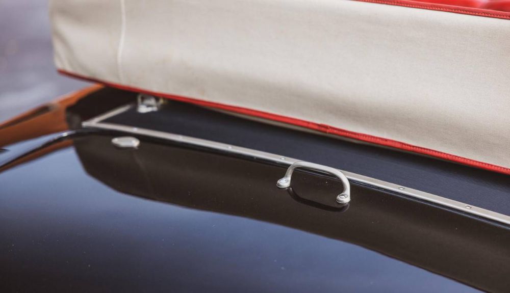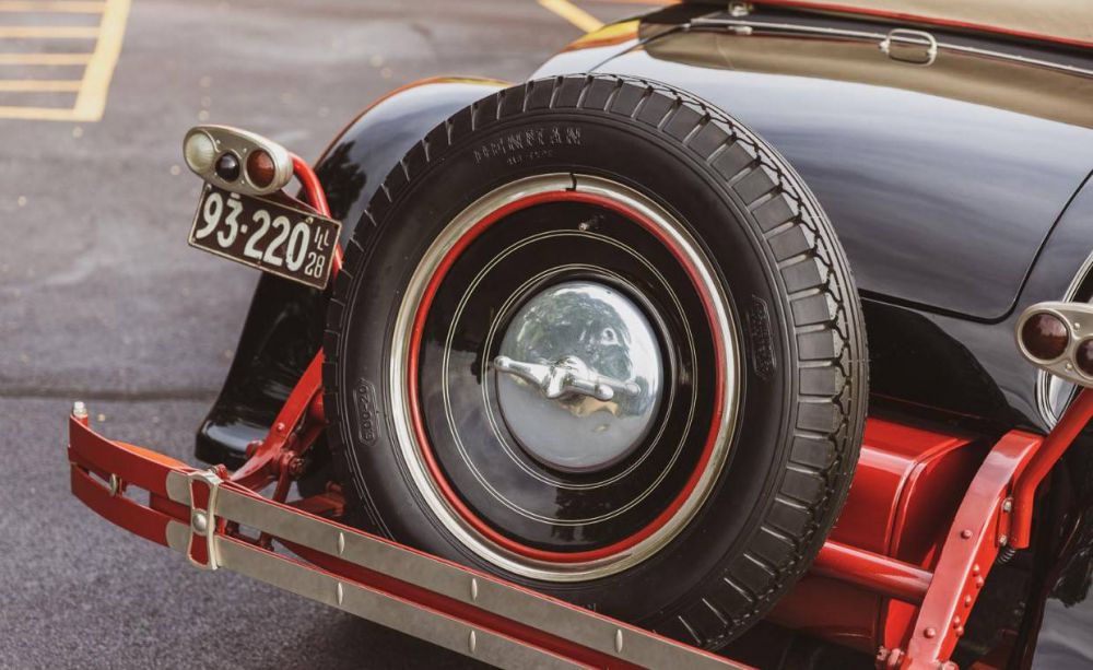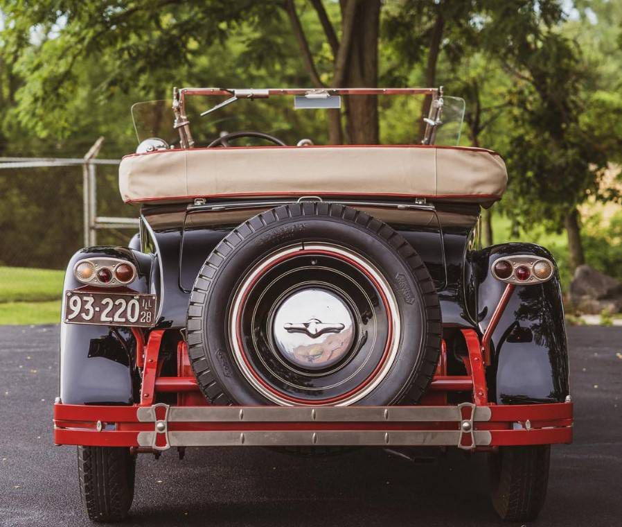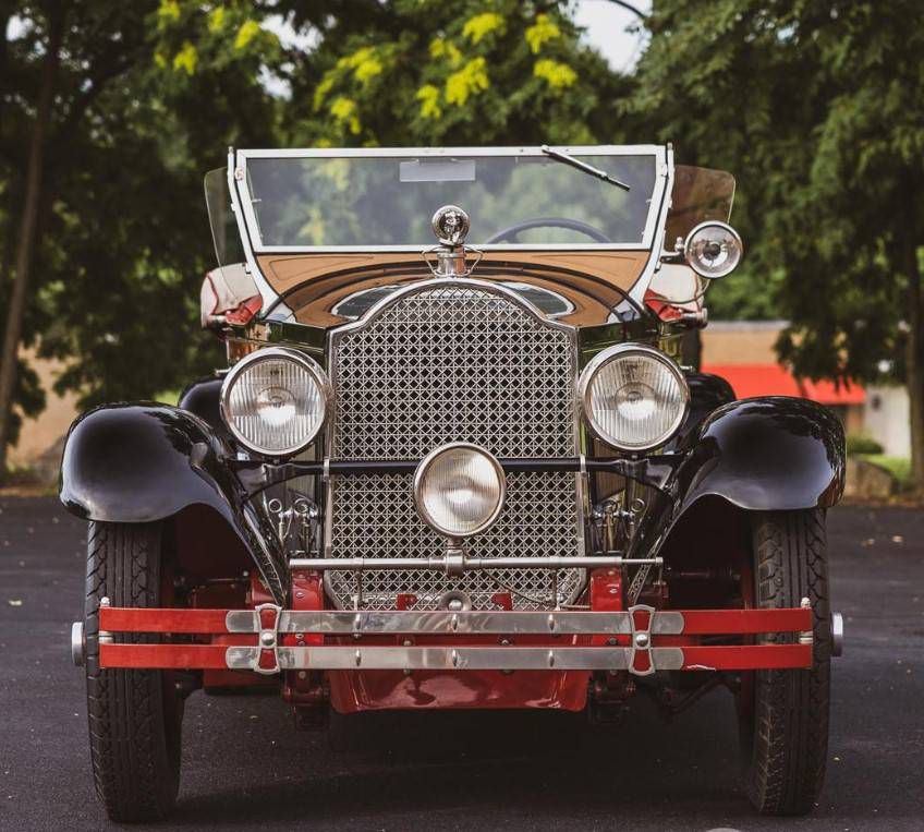 An exceptionally well-maintained 1928 Packard Series 526 Convertible Coupe. Of a very high quality due to being museum-kept for over 45 years. It comes in stunning black paint with red trim and leather interior and is one of the most seldom seen Packard body styles for 1928. Also, it comes equipped with dual golf club doors and very unique dual rear lamps. The front seat and rumble seat are upholstered in period-appropriate heavy-grain red leather. Furthermore, the doors and dash are capped with beautiful wood trim. It won the Class Car Club of America's 1997 Grand Classic Senior Division First Place Ring, which is proudly displayed on the car. The black body with red trim, matching red disc wheels and ivory canvas top make for a handsome period-correct combination. The running boards are like new and it is nicely equipped with a driver's side spotlight, a Pilot Ray lamp and a rear-mounted spare. The signature chrome radiator shell is excellent, as are the proper drum headlights. Proper Packard Green paint adorns the engine and it is well-detailed, showing only minor signs that it has seen some use. This 1928 Packard Series 526 Convertible Coupe has a 289 cid L-head inline six-cylinder engine, 81 HP and three-speed manual gearbox. Additionally, there are four-wheel mechanical drum brakes, front solid and rear live axle with semi-elliptic leaf springs and a wheelbase of 126.